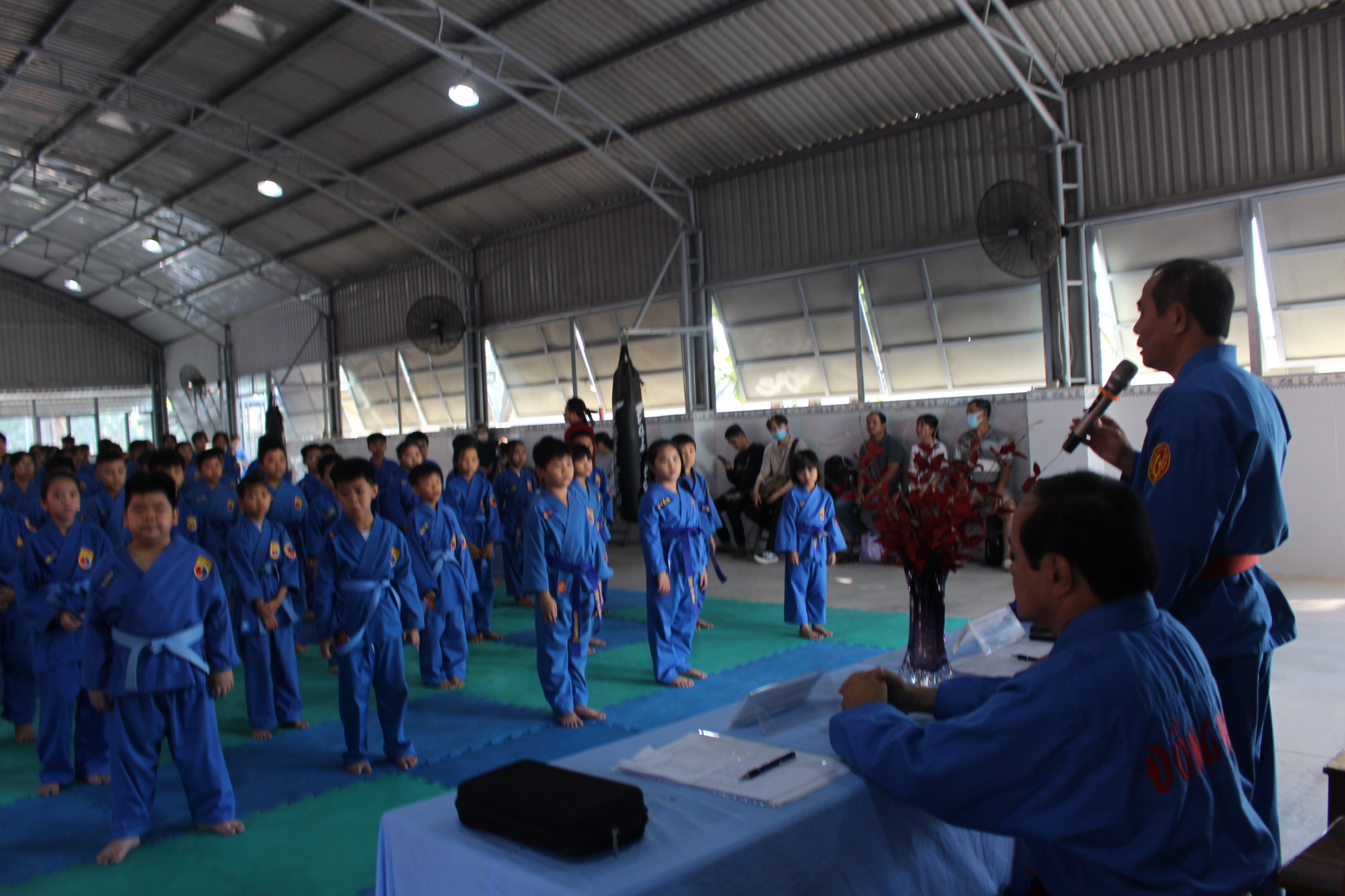 Đến dự giám sát và phát biểu tại kỳ thi, Đại tá, võ sư Vũ Văn Điền, Chỉ huy trưởng Bộ CHQS tỉnh, Ủy viên Liên đoàn Vovinam Việt Nam, Phó địa bàn phụ trách Vovinam Đông Nam Bộ, Chủ tịch Liên đoàn Vovinam tỉnh đánh giá cao tinh thần nỗ lực luyện tập của các võ sinh tham gia kỳ thi thăng cấp sơ đẳng Vovinam năm nay. Đại tá Vũ Văn Điền đề nghị, trên tinh thần thượng võ, đoàn kết, các võ sinh Vovinam nỗ lực thi và đều đạt kết quả, được thăng cấp theo quy định của môn phái.