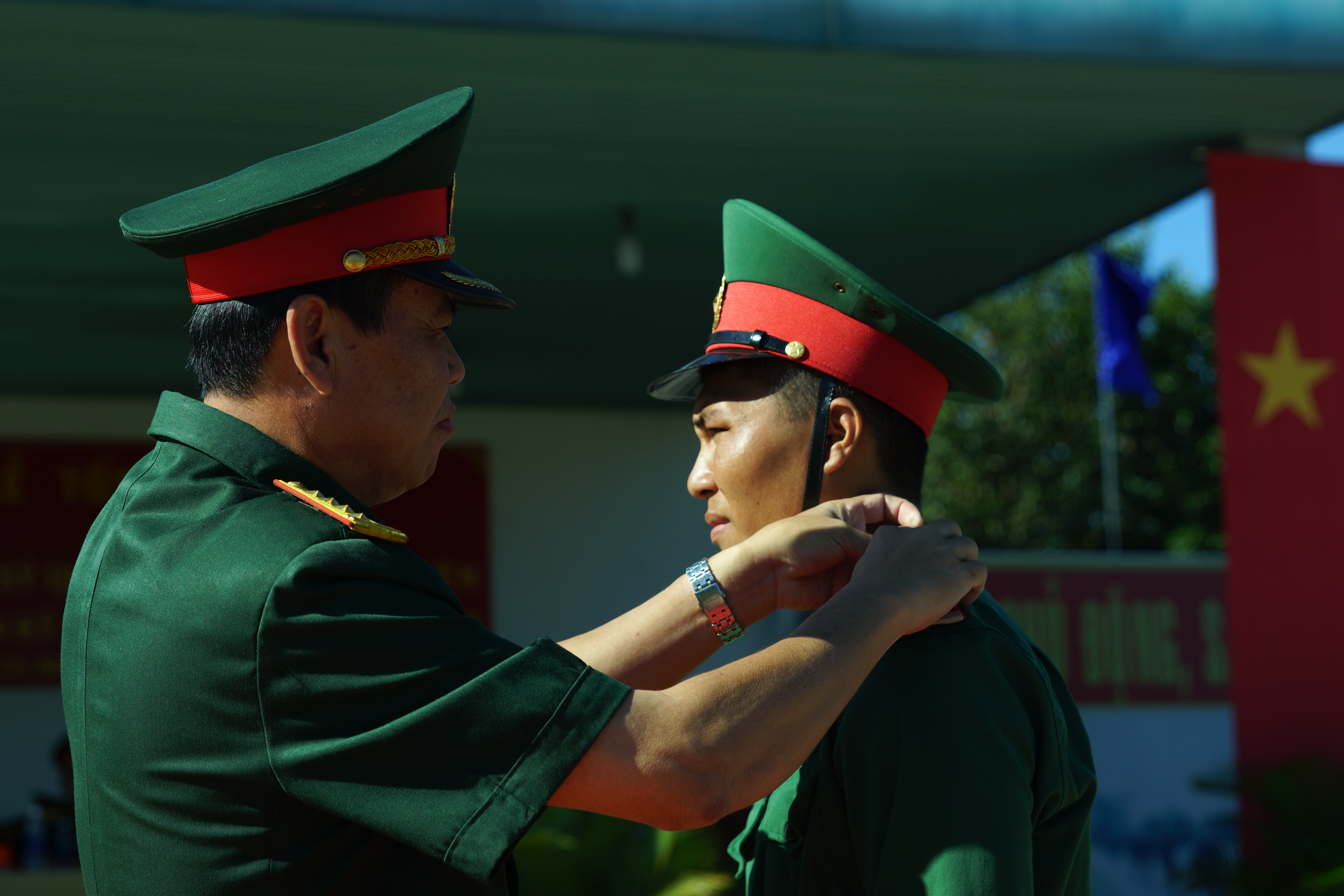 Đại tá Đặng Văn Lẫm, Hiệu trưởng nhà trường gắn quân hàm Hạ sĩ quan cho học viên tốt nghiệp đào tạo Tiểu đội trưởng