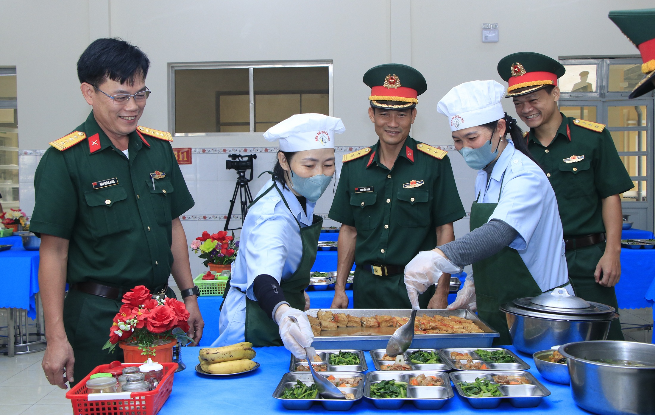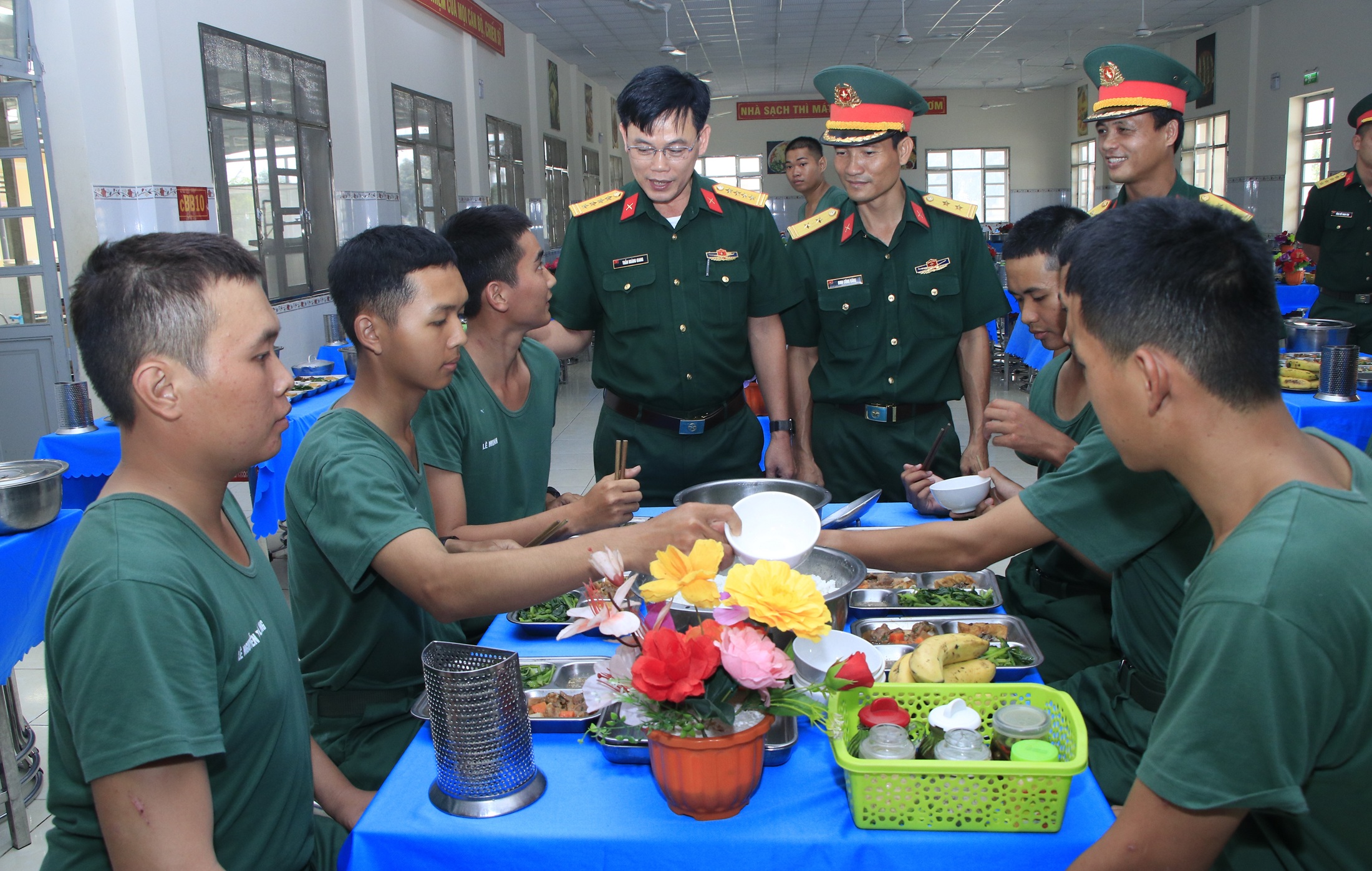 Thủ trưởng Sư đoàn và Trung đoàn thường xuyên quan tâm, nâng cao chất lượng bữa ăn cho bộ đội.