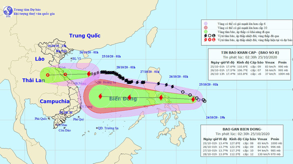 Theo Trung tâm Khí tượng Thủy văn Quốc gia, sáng sớm 25-10, áp thấp nhiệt đới trên khu vực phía Đông miền Trung Philippines đã mạnh lên thành bão số 9, có tên quốc tế là Molave. Dự báo, bão số 9 sẽ di chuyển nhanh, cường độ mạnh.