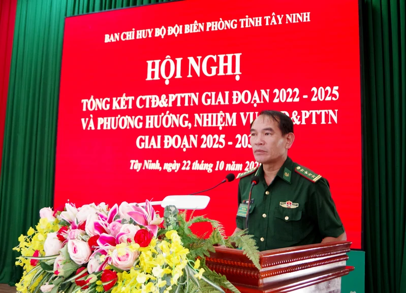 (QK7 Online) - Ngày 22/10, Ban Chỉ huy Bộ đội Biên phòng (BĐBP) tỉnh Tây Ninh tổ chức Hội nghị tổng kết công tác Đoàn và phong trào thanh niên (CTĐ&PTTN) giai đoạn 2022 - 2025 và phương hướng nhiệm vụ công tác Đoàn và phong trào thanh niên giai đoạn 2025 - 2030. Dự và chỉ đạo có Đại tá Vũ Minh Tùng, Ủy viên Ban Thường vụ Đảng ủy, Phó Chính ủy Ban Chỉ huy BĐBP tỉnh và Thượng tá Nguyễn Ngọc Dung, Phó Chính ủy Ban Chỉ huy BĐBP tỉnh.