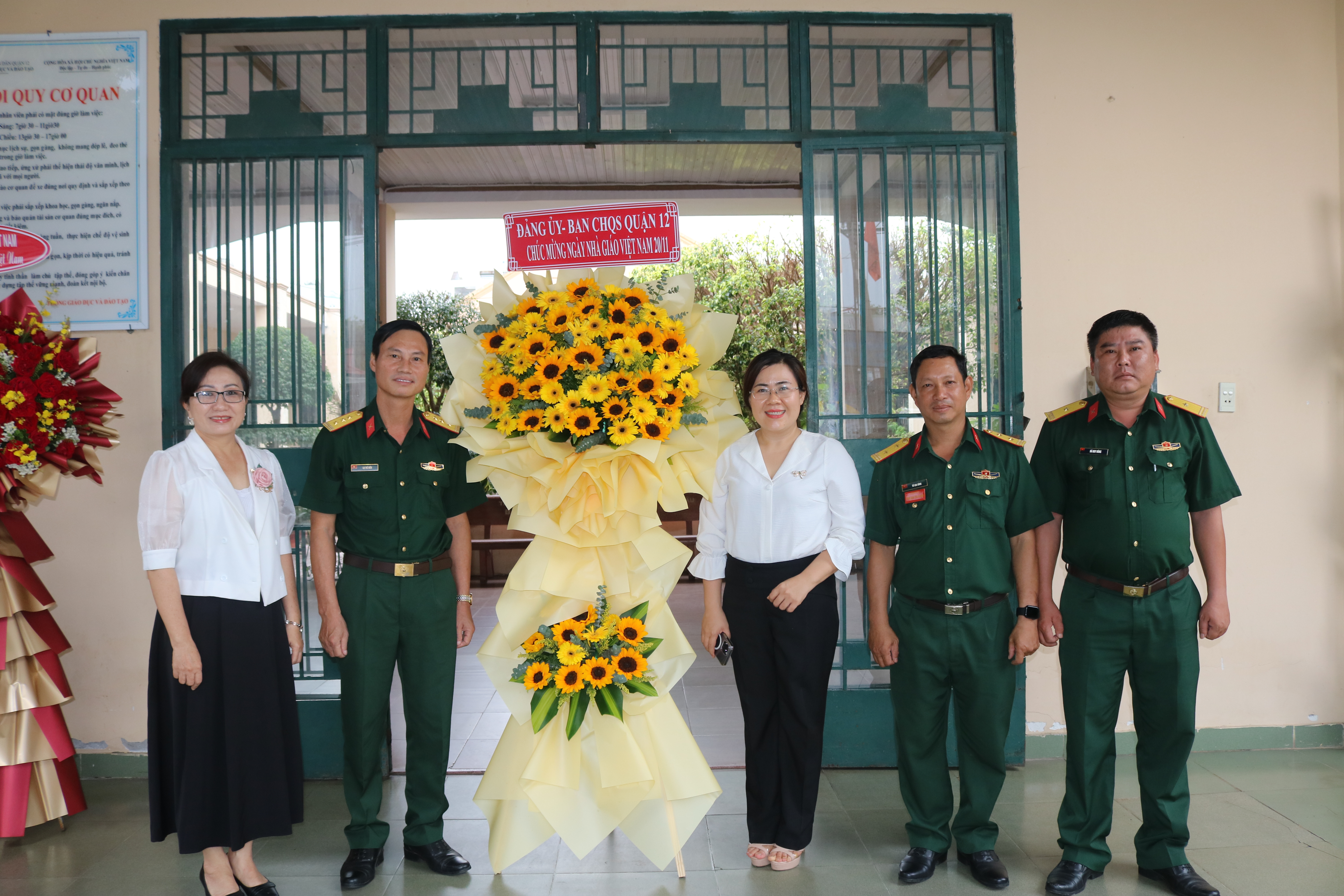 Thay mặt Đảng ủy, Ban CHQS Quận 12, các đồng chí lãnh đạo, chỉ huy Ban CHQS quận chúc các thầy giáo, cô giáo, cán bộ quản lý và nhân viên các cơ sở giáo dục mạnh khỏe, vui tươi nhân kỷ niệm ngày Nhà giáo Việt Nam, đồng thời tiếp tục có nhiều đóng góp trong sự nghiệp “trồng người”, góp phần xây dựng địa phương ngày càng phát triển; mong muốn các cơ sở giáo dục tăng cường mối quan hệ gắn bó với LLVT quận, trao đổi thông tin, kinh nghiệm, nghiệp vụ trong công tác giáo dục, đào tạo, định hướng học sinh thi vào các trường Quân đội; nâng cao chất lượng giáo dục chính trị, giáo dục quốc phòng, an ninh; truyền thống Quân đội Nhân dân Việt Nam cho học sinh, góp phần thực hiện có hiệu quả nhiệm vụ xây dựng và bảo vệ Tổ quốc trong tình hình mới.