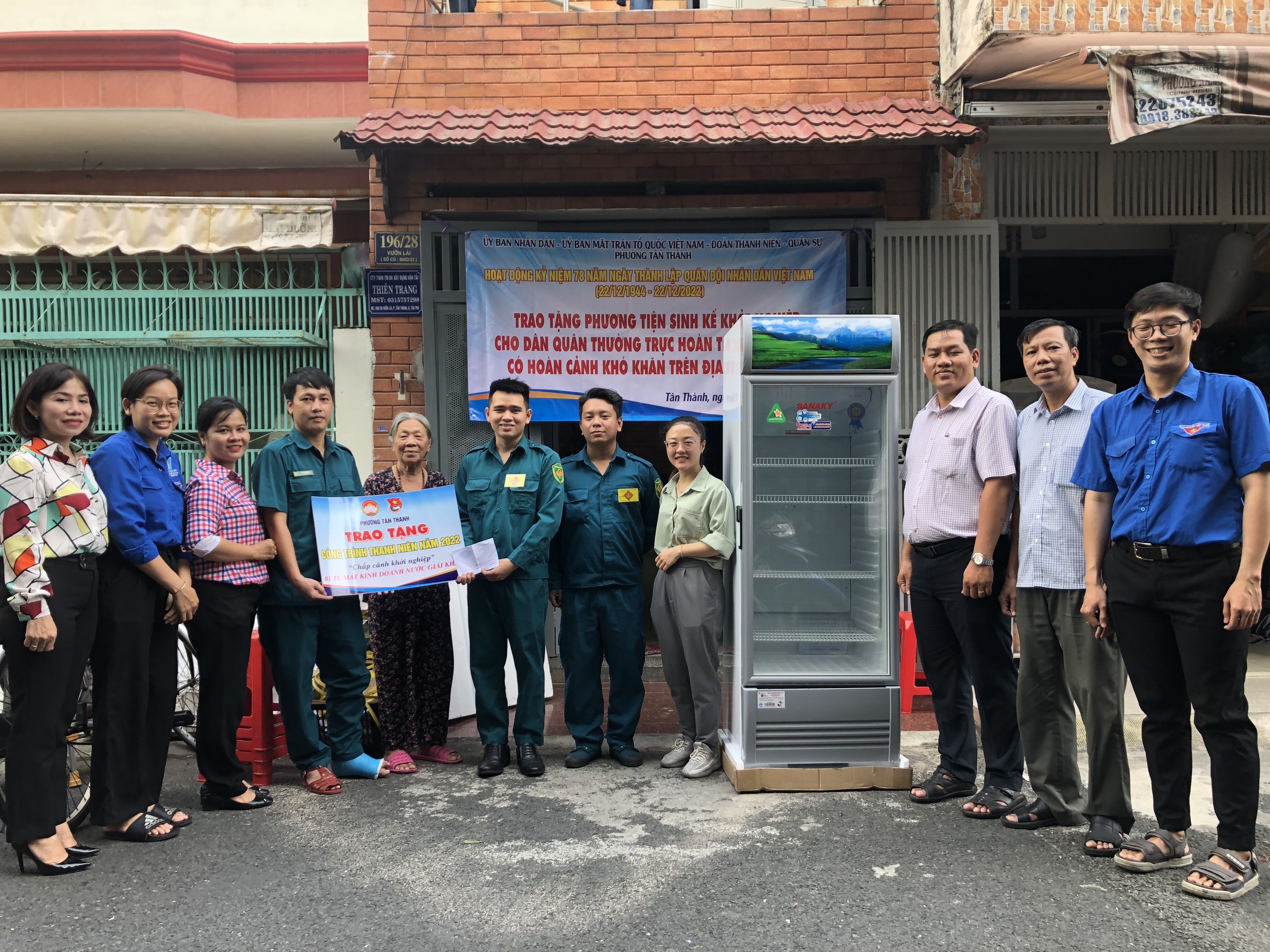 (QK7 Online) - Nhân kỷ niệm 78 năm Ngày Thành lập Quân đội Nhân dân Việt Nam (22/12/1944 – 22/12/2022), ngày 8/12, Ban CHQS phường Tân Thành, quận Tân Phú, TPHCM phối hợp các tổ chức chính trị - xã hội phường tổ chức trao tặng phương tiện sinh kế khởi nghiệp cho Dân quân thường trực có hoàn cảnh khó khăn trên địa bàn.