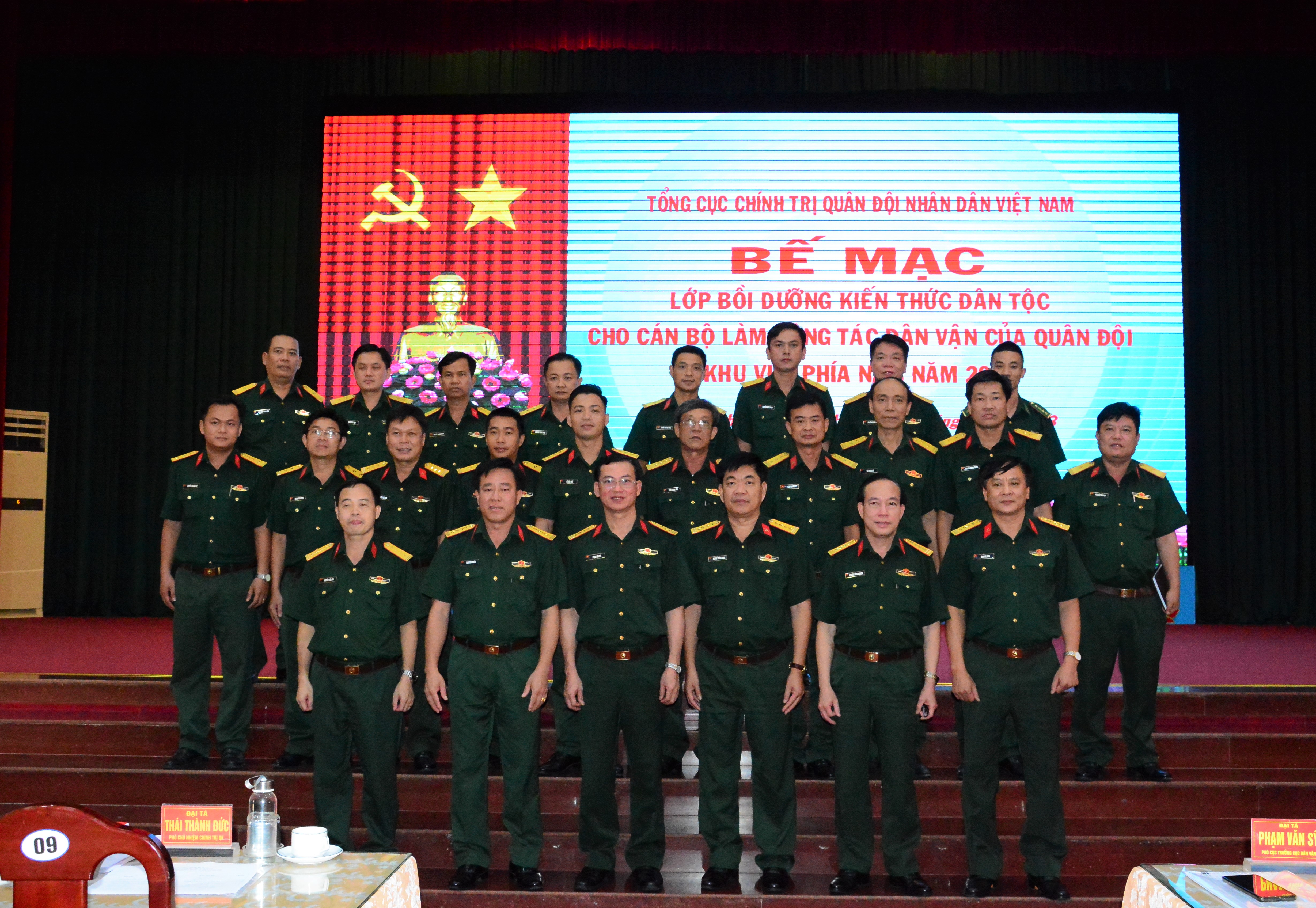 Đại biểu và các học viên Lớp bồi dưỡng kiến thức dân tộc của Quân đội năm 2023 khu vực phía Nam trong lễ bế mạc.