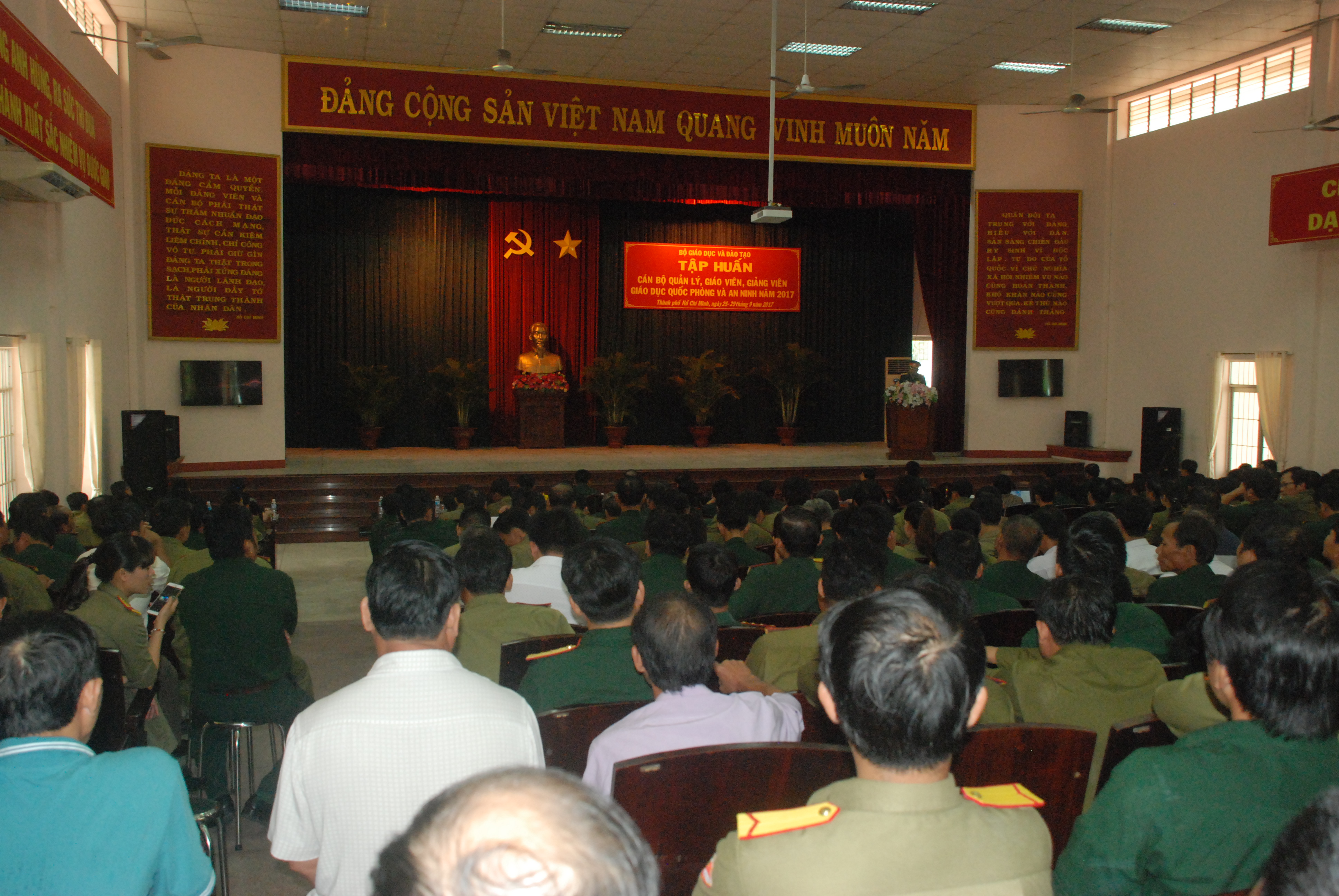 Trong thời gian 5 ngày (từ ngày 25 đến 29/9/2017), 407 cán bộ, giáo viên, giảng viên đến từ 33 sở giáo dục và đào tạo, 12 trường cao đẳng sư phạm, 35 học viện, trường đại học và 19 trung tâm giáo dục quốc phòng, an ninh ở khu vực phía Nam (từ Đà Nẵng trở vào) được nghiên cứu và được các giảng viên các học viện, nhà trường giới thiệu các chuyên đề tình hình an ninh thế giới và khu vực liên quan đến quốc phòng an ninh Việt Nam; các nội dung cập nhật về quốc phòng an ninh cho học sinh, sinh viên hiện nay; Phòng chống tội phạm và tình hình tệ nạn xã hội; bảo vệ chủ quyền biển, đảo, chủ quyền biên giới của Việt Nam hiện nay; Chuyên đề đấu tranh bảo vệ Tổ quốc từ năm 1945 đến nay; Các chuyên đề về kỹ năng quân sự, phương pháp giảng bài, thực hành bắn súng ngắn K54...