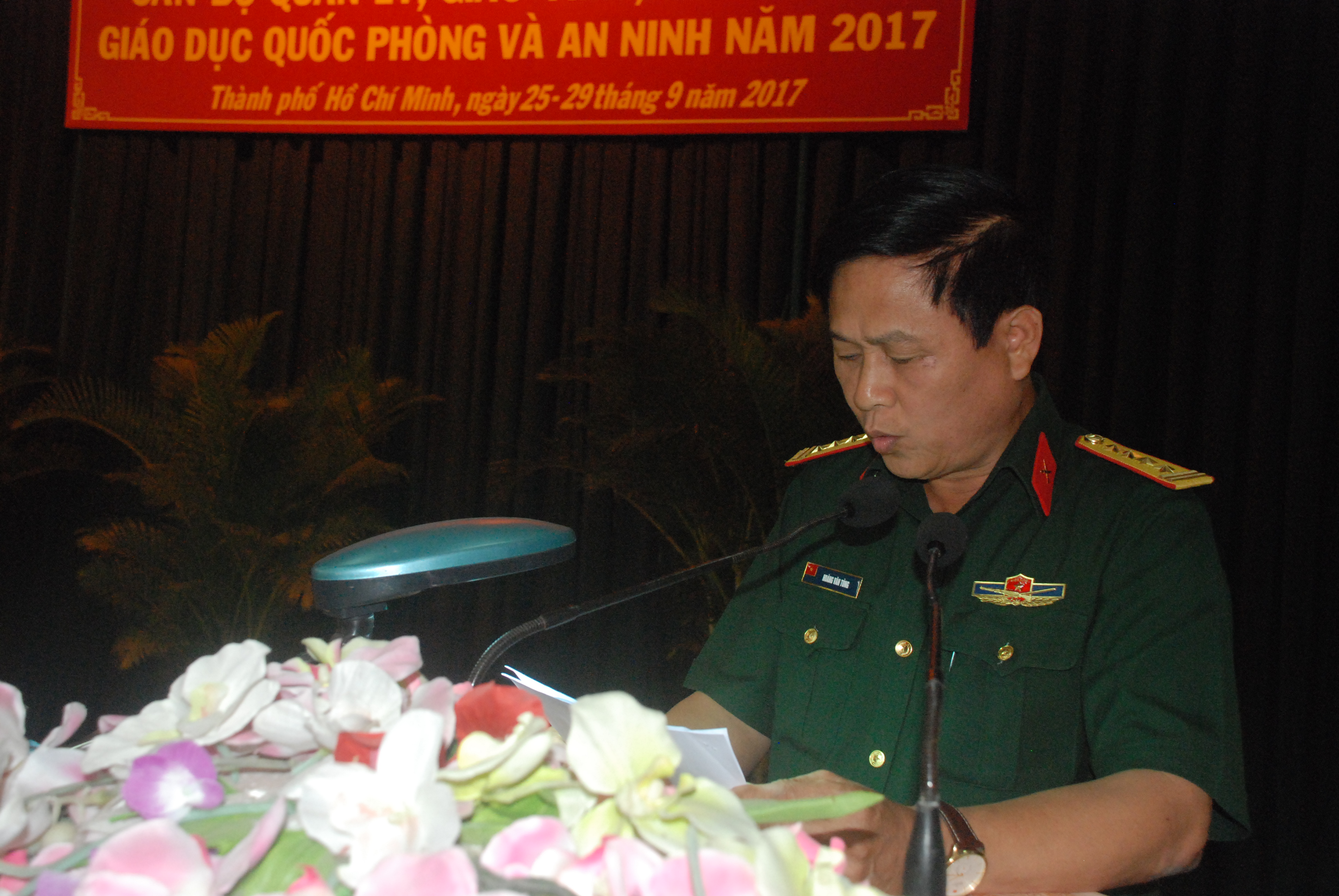 (QK7 Online) Ngày 29/9/2017, Tại Trường quân sự Quân khu 7, Vụ Quốc phòng và an ninh phối hợp với Quân khu 7 tổ chức bế mạc tập huấn cán bộ, giáo viên, giảng viên giáo dục quốc phòng và an ninh khu vực phía Nam năm 2017. Thiếu tướng Nguyễn Văn Nam, Phó Tư lệnh Quân khu 7, Đại tá Hoàng Văn Tòng, Phó Vụ trưởng Vụ giáo dục Quốc phòng, an ninh tới dự.