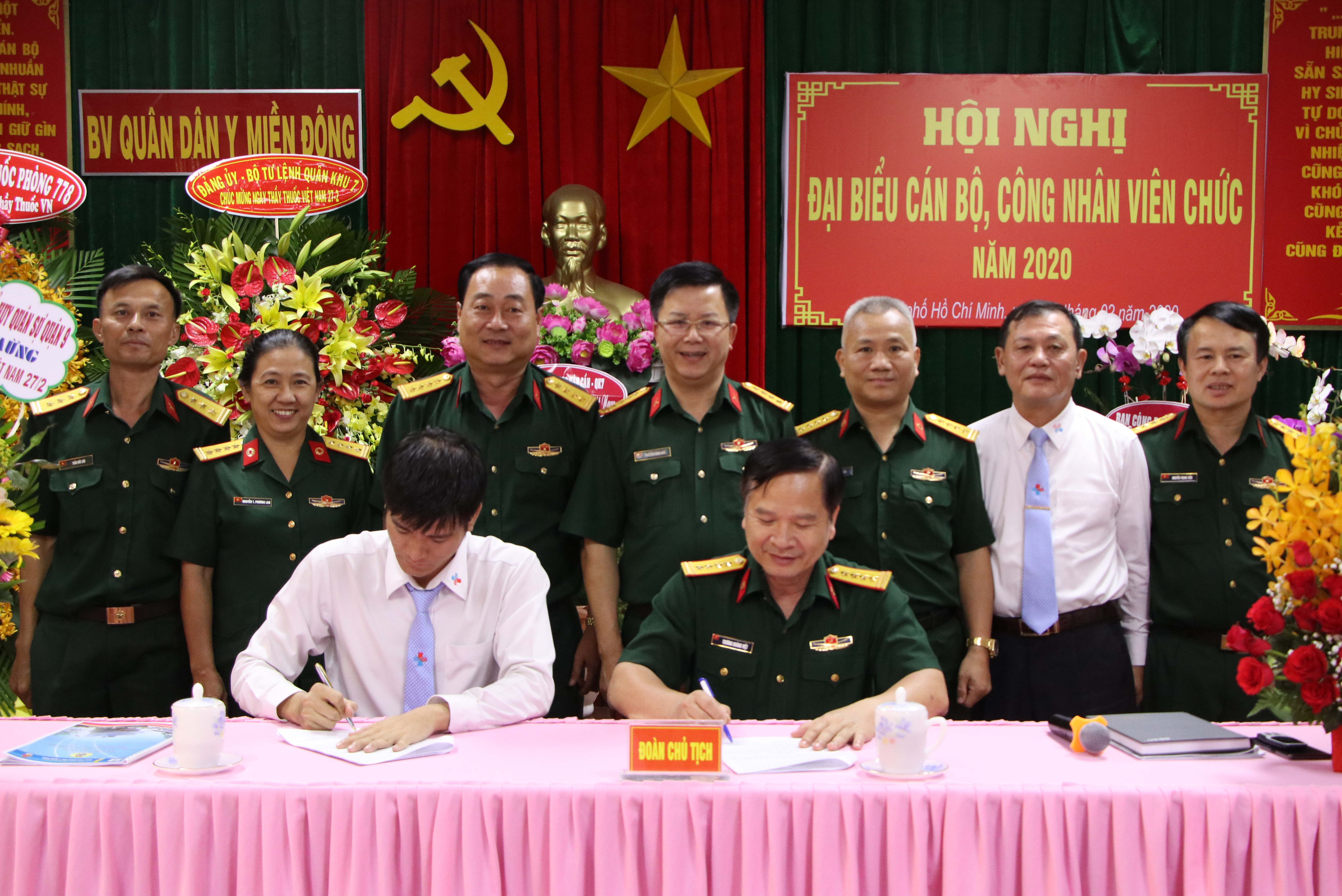 (QK7 Online) - Ngày 26/2, Bệnh viện Quân dân y miền Đông tổ chức hội nghị đại biểu cán bộ, công nhân viên chức năm 2020. Đại tá Nguyễn Đình Đức – Trưởng Ban Công đoàn Quốc phòng, Tổng cục Chính trị Quân đội nhân dân Việt Nam tới dự.