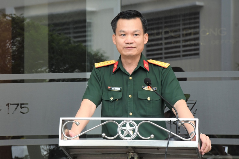Đại tá, Tiến sĩ, Bác sĩ Phan Đình Mừng, Phó Giám đốc Bệnh viện Quân y 175 phát biểu động viên đoàn công tác.