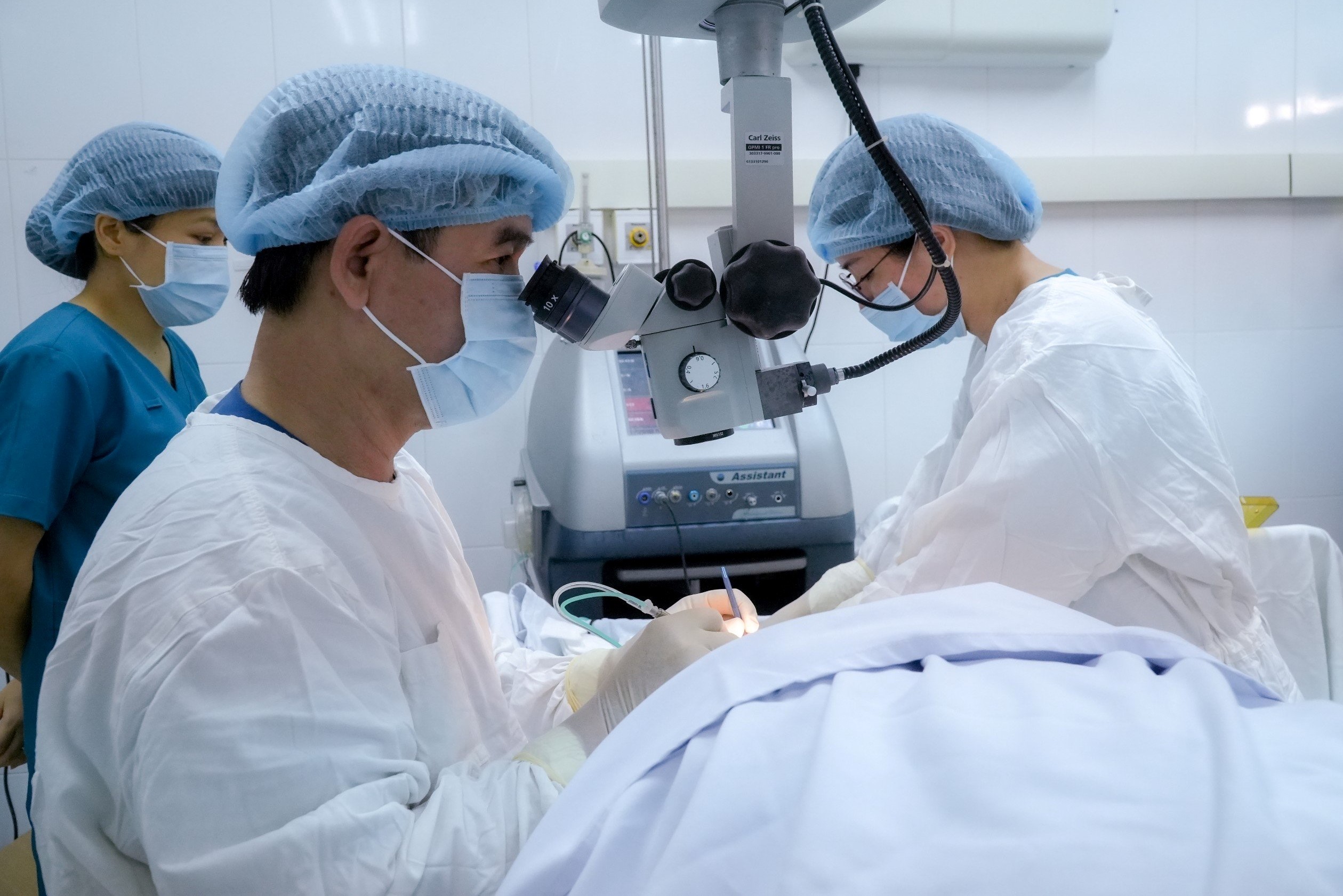 Các bác sĩ tiến hành phẫu thuật mắt cho người bệnh.