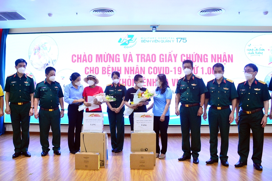 Theo đó, Bệnh viện Quân y 175 trao giấy xuất viện cho nữ bệnh nhân Ngô Thị Ngọc Hoài (33 tuổi), là bệnh nhân Covid-19 thứ 1.000 được điều trị khỏi bệnh tại Trung tâm Điều trị bệnh nhân Covid-19 mức độ vừa và nặng của bệnh viện. Trước đó, chị Hoài mang thai được 33 tuần thì phải phẫu thuật cấp cứu, bắt con để cứu sống cả hai mẹ con. Trải qua nhiều lần phẫu thuật, sau hơn hai tháng, chị Hoài được y bác sĩ Bệnh viện Quân y 175 điều trị khỏi bệnh. Đặc biệt, chị Hoài đã được bệnh viện sử dụng kỹ thuật chạy ECMO tách đôi cùng với nữ bệnh nhân khác là Nguyễn Thị Thu Trinh trong 18 ngày. Chị Trinh đã khỏi bệnh và cho xuất viện trước đó.