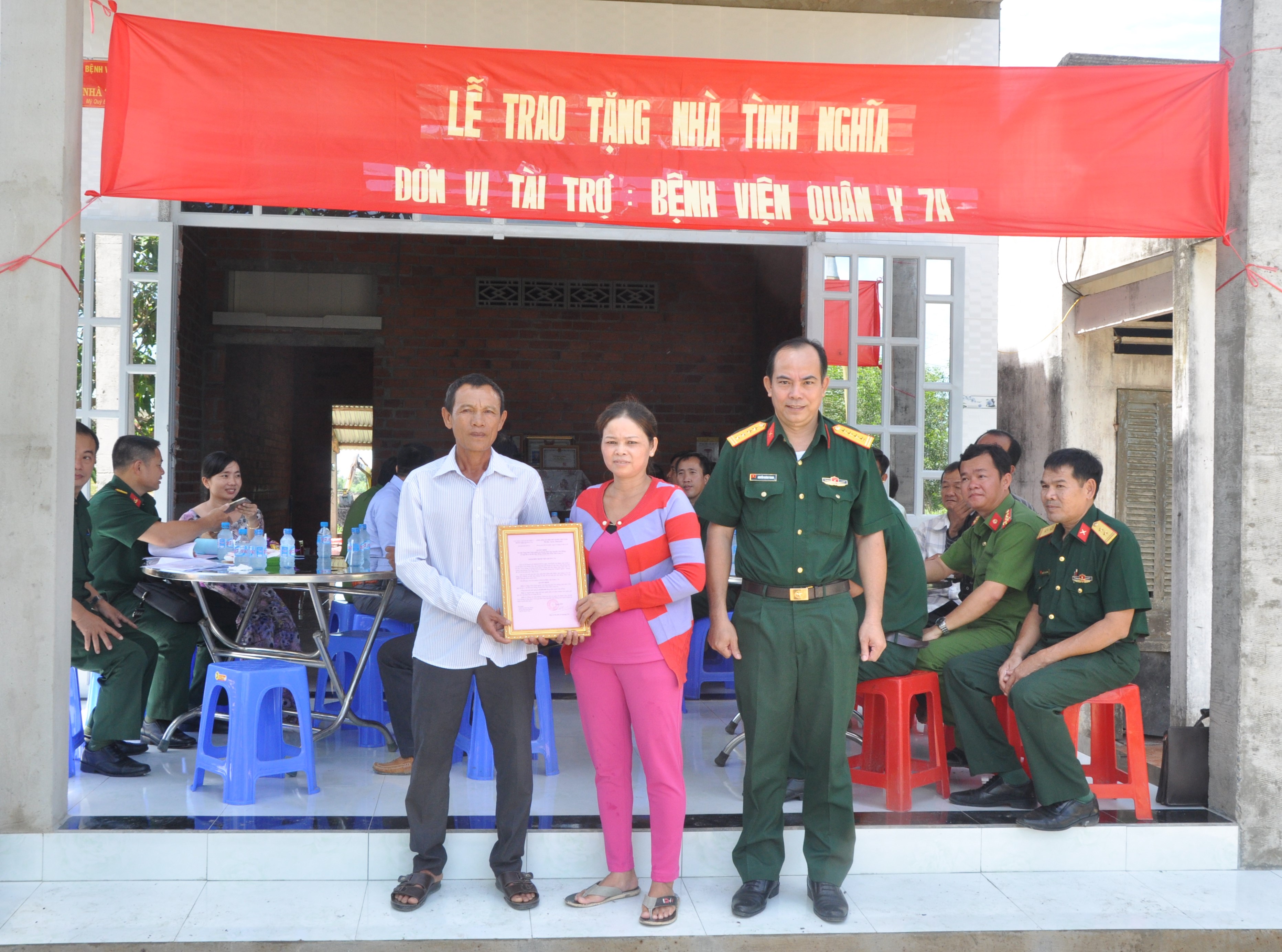 Đại tá Nguyễn Hoàng Thanh, Chính ủy Bệnh viện trao quyết định sở hữu căn nhà cho gia đình ông Nguyễn Văn Mông