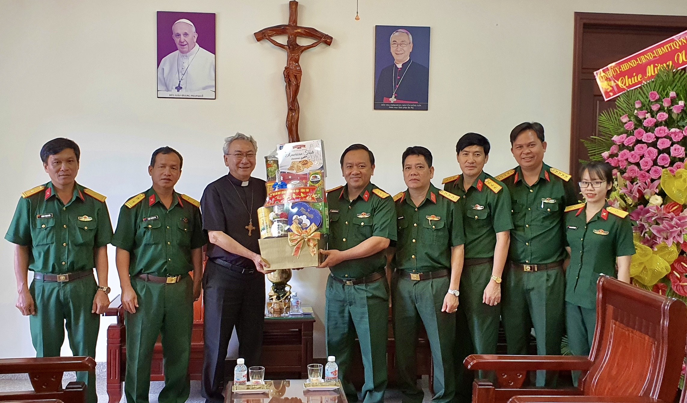 Các vị chức sắc và linh mục gửi lời chúc tốt lành đến cán bộ, chiến sĩ LLVT tỉnh một năm mới dồi dào sức khỏe và hoàn thành xuất sắc nhiệm vụ được giao.