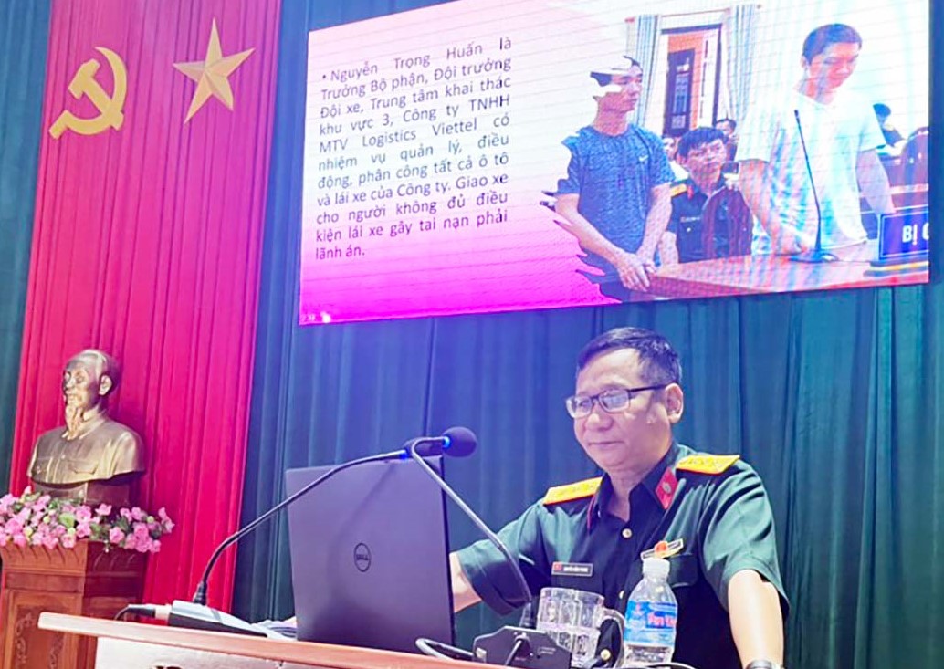 Trong thời gian 1 buổi, lớp học được Thượng tá Nguyễn Hồng Phong, Thẩm phán Tòa án Quân khu truyền đạt 3 chuyên đề gồm: Luật Giao thông đường bộ và một số biện pháp tăng cường bảo đảm an toàn giao thông đường bộ; Luật Phòng, chống ma túy và những thông tin về kết quả xét xử các vụ án trong LLVT Quân khu, bài học kinh nghiệm.