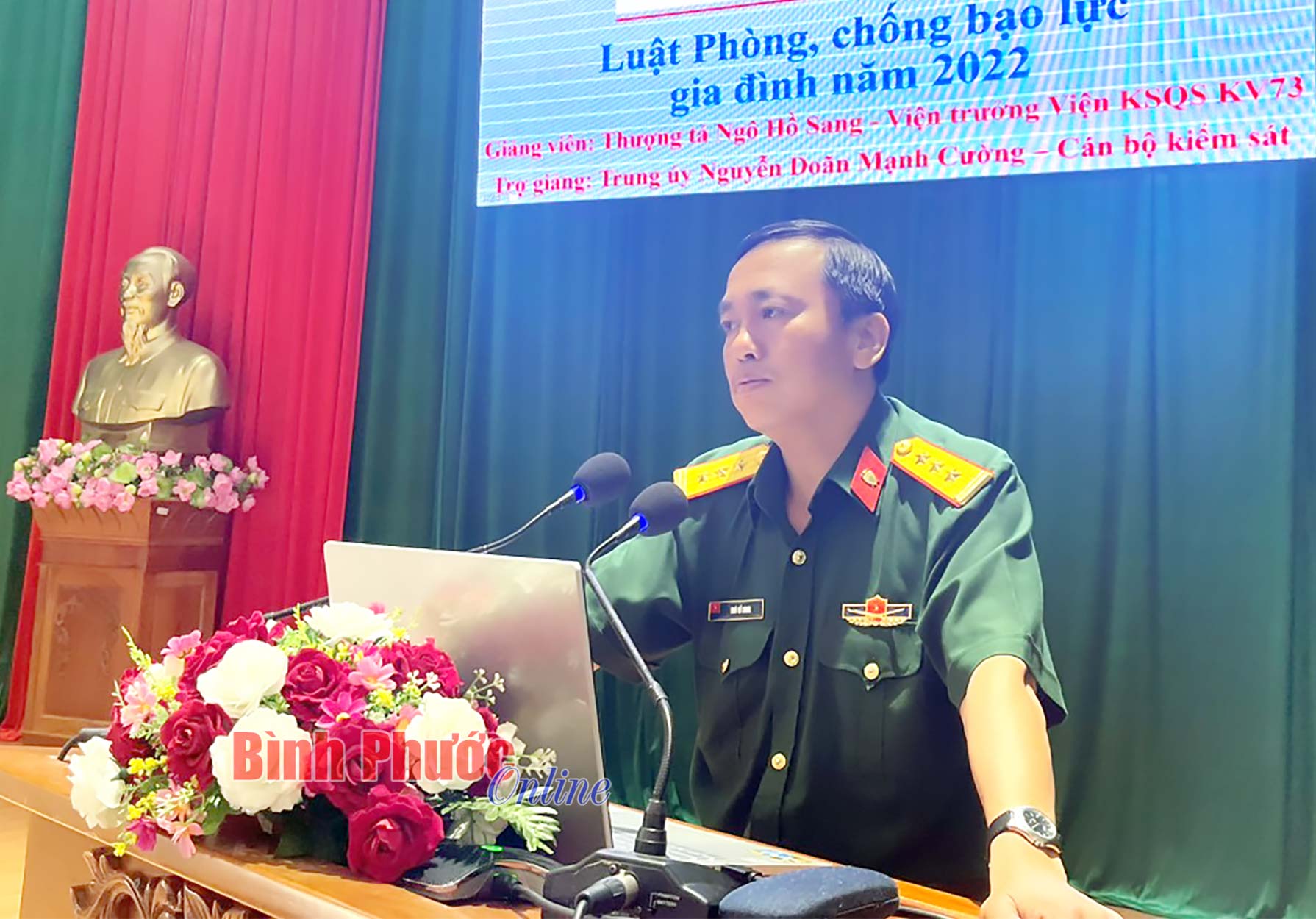 Trong 1 ngày, các cán bộ, chiến sĩ được truyền đạt 6 chuyên đề, gồm: Nội dung cơ bản Luật Phòng, chống bạo lực gia đình năm 2022 và các văn bản quy định chi tiết, hướng dẫn thi hành; nội dung cơ bản của Luật Thực hiện dân chủ ở cơ sở năm 2022 và quy định của Bộ Quốc phòng về thực hiện dân chủ ở cơ sở; nội dung cơ bản của Luật Thanh tra năm 2022 và các văn bản quy định chi tiết, hướng dẫn thi hành; công tác phổ biến, giáo dục pháp luật trong quân đội và phát huy vai trò của lực lượng Quân đội nhân dân tham gia công tác phổ biến, giáo dục pháp luật, vận động nhân dân chấp hành pháp luật tại cơ sở. Tình hình vi phạm, tội phạm xảy ra trong toàn quân và LLVT quân khu, biện pháp phòng ngừa. Tình hình vi phạm an toàn giao thông đường bộ trong Quân đội, quân khu và các quy định bảo đảm an toàn khi tham gia giao thông…