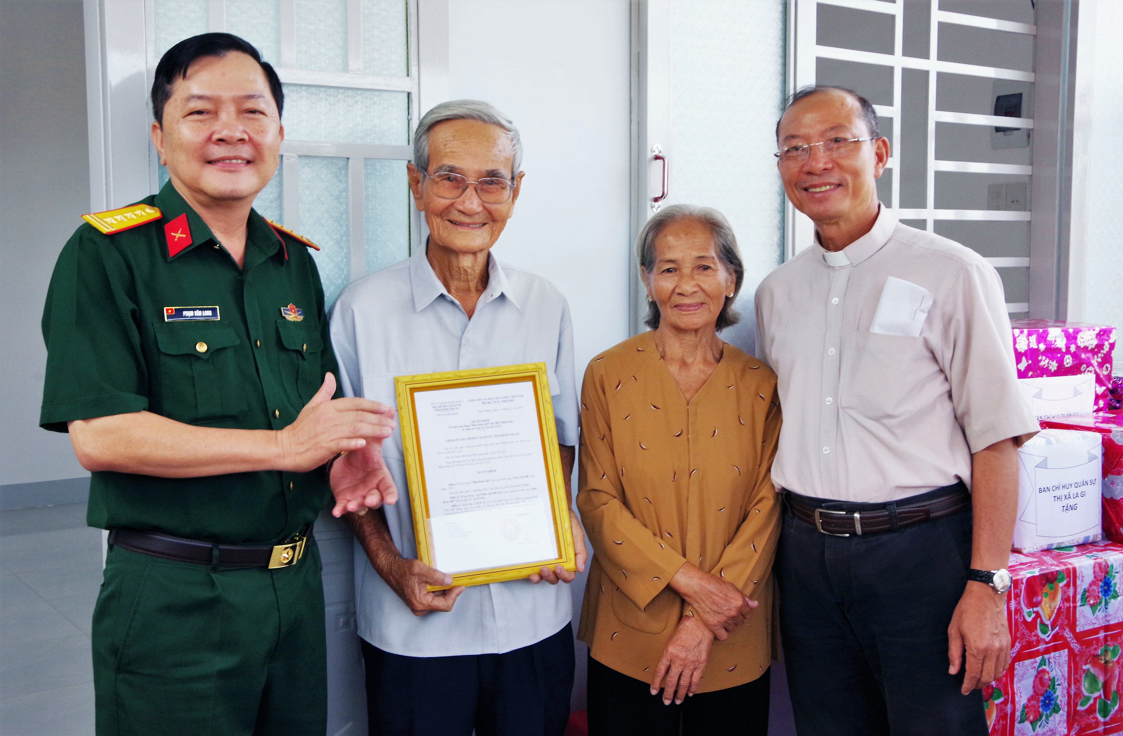Tại lễ bàn giao nhà, Bộ CHQS tỉnh, Ban CHQS thị xã La Gi, chính quyền, ban ngành, đoàn thể, tổ chức chính trị, xã hội, các công ty trên địa bà thị xã và Giáo xứ Tân Lý, Giáo hạt Hàm Tân đã tặng gia đình ông Trần Văn Để những vật dụng phục vụ sinh hoạt... Được biết, đây là những việc làm ý nghĩa hướng đến kỷ niệm 74 năm ngày thành lập Quân đội nhân dân Việt Nam và đón Giáng sinh 2018.