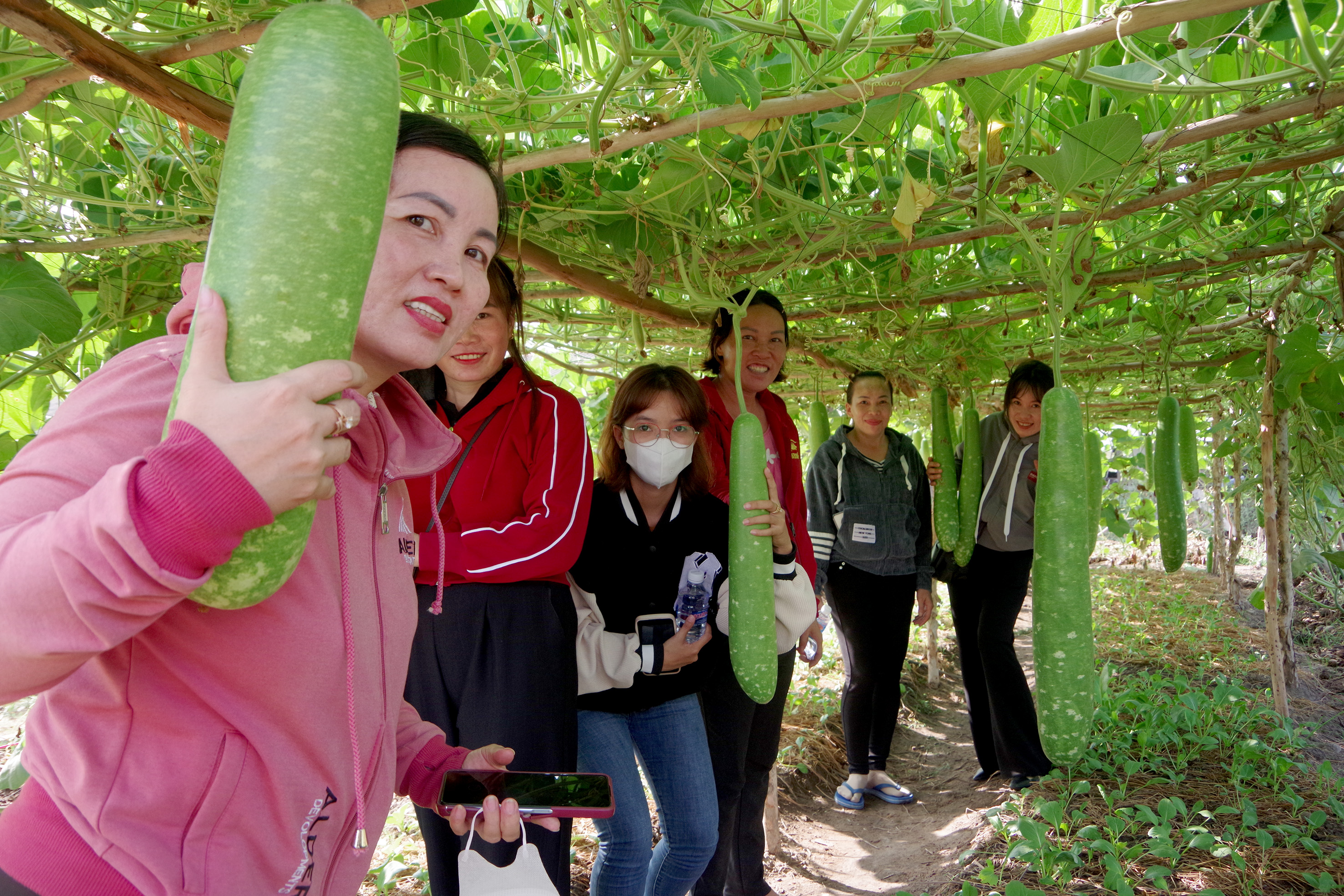 Thân nhân chiến sĩ mới tham quan khu tăng gia sản xuất của đơn vị.