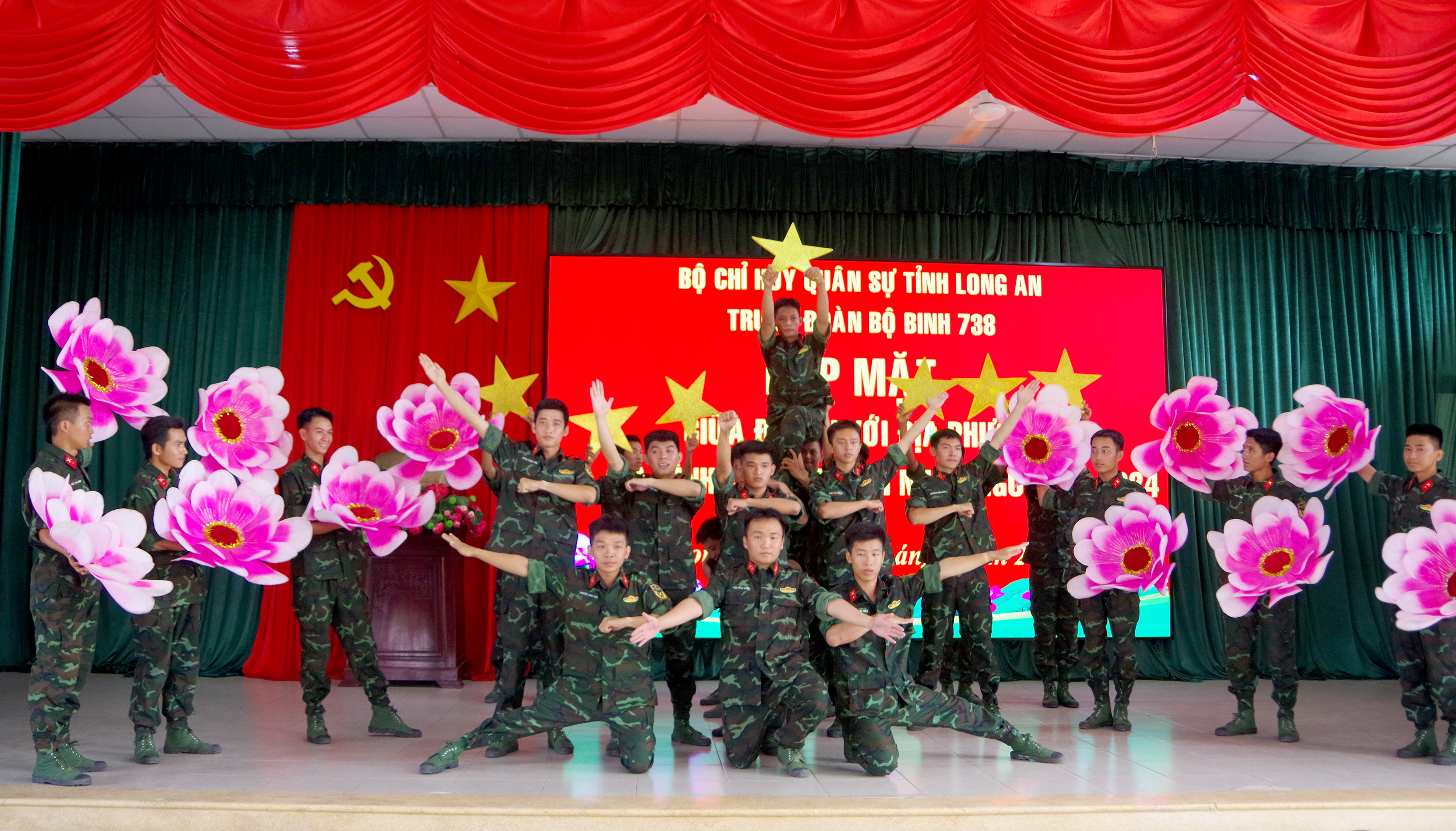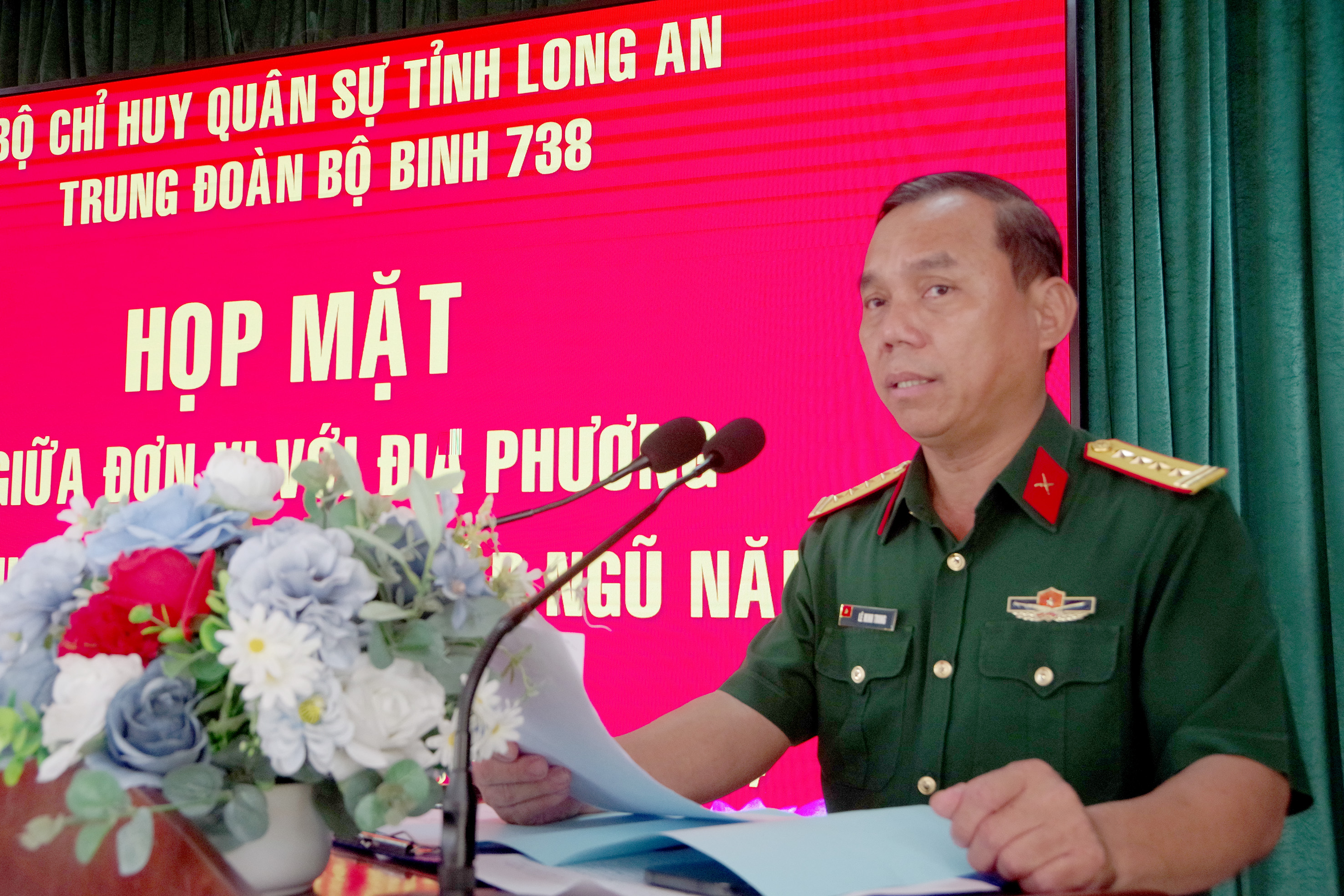 Phát biểu tại buổi họp mặt, Đại tá Lê Minh Trung, Chính ủy Bộ CHQS tỉnh khẳng định các chiến sĩ mới đã trưởng thành vượt bậc. Đó là kết quả của sự phối hợp giữa gia đình và đơn vị. Là sự dìu dắt của đội ngũ cán bộ. Hiện nay, LLVT tỉnh Long An đang ra sức thi đua với chủ đề “Tiếp sức chiến sĩ Điện Biên - Tiến lên giành 3 nhất”. Vì vậy, mỗi cán bộ, chiến sĩ cần phát huy sở trường, tiếp tục vượt qua khó khăn, gian khổ để trở thành một người chiến sĩ “Bộ đội Cụ Hồ”, được Nhân dân tin tưởng, yêu mến.  Đồng thời Đảng ủy, Ban chỉ huy Trung đoàn 738 chú trọng rèn luyện đội ngũ cán bộ có bản lĩnh chính trị vững vàng, năng lực, trình độ chuyên môn, ý thức chấp hành pháp luật Nhà nước, chăm lo xây dựng tổ chức Đảng, bảo đảm tốt đời sống bộ đội.