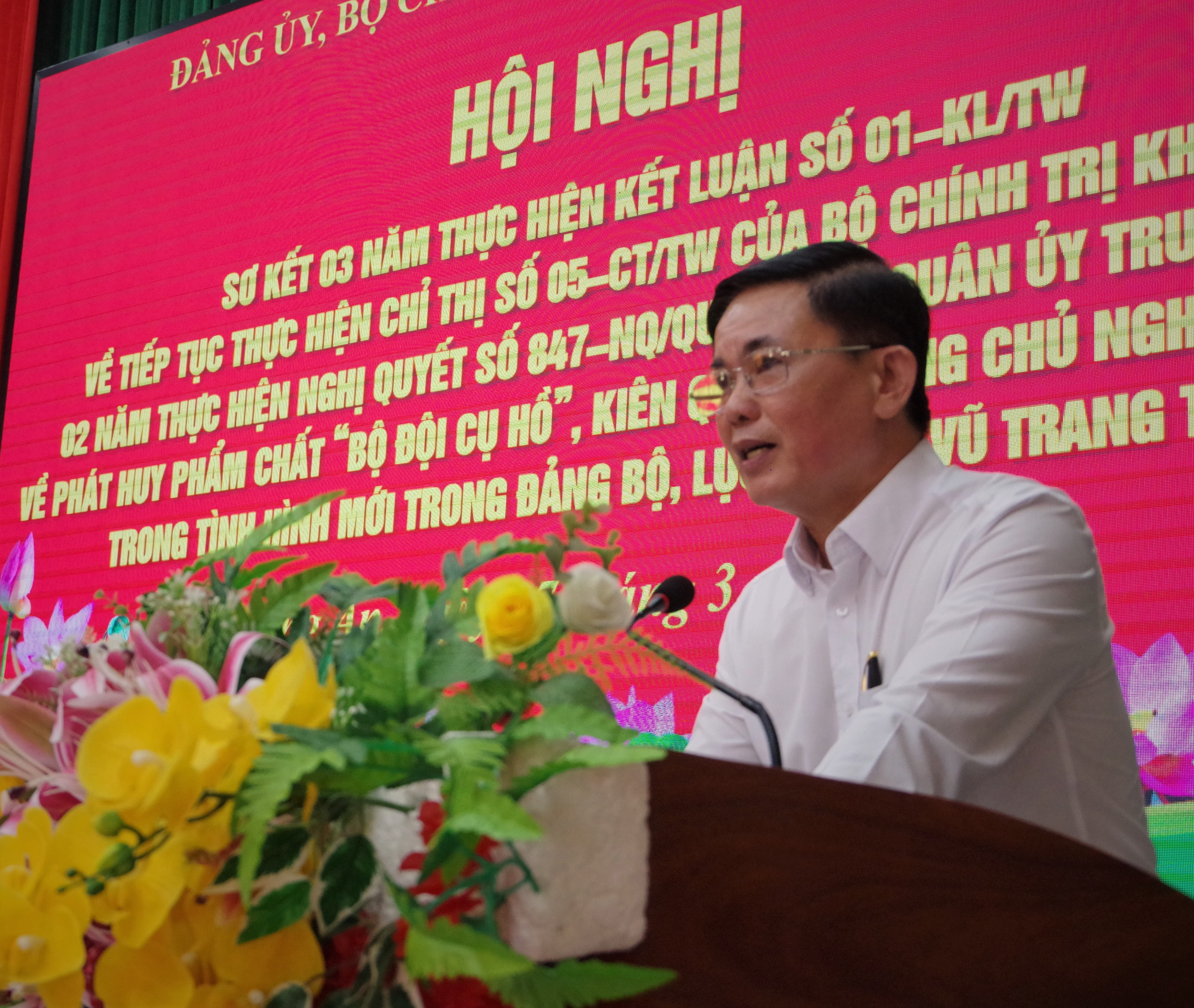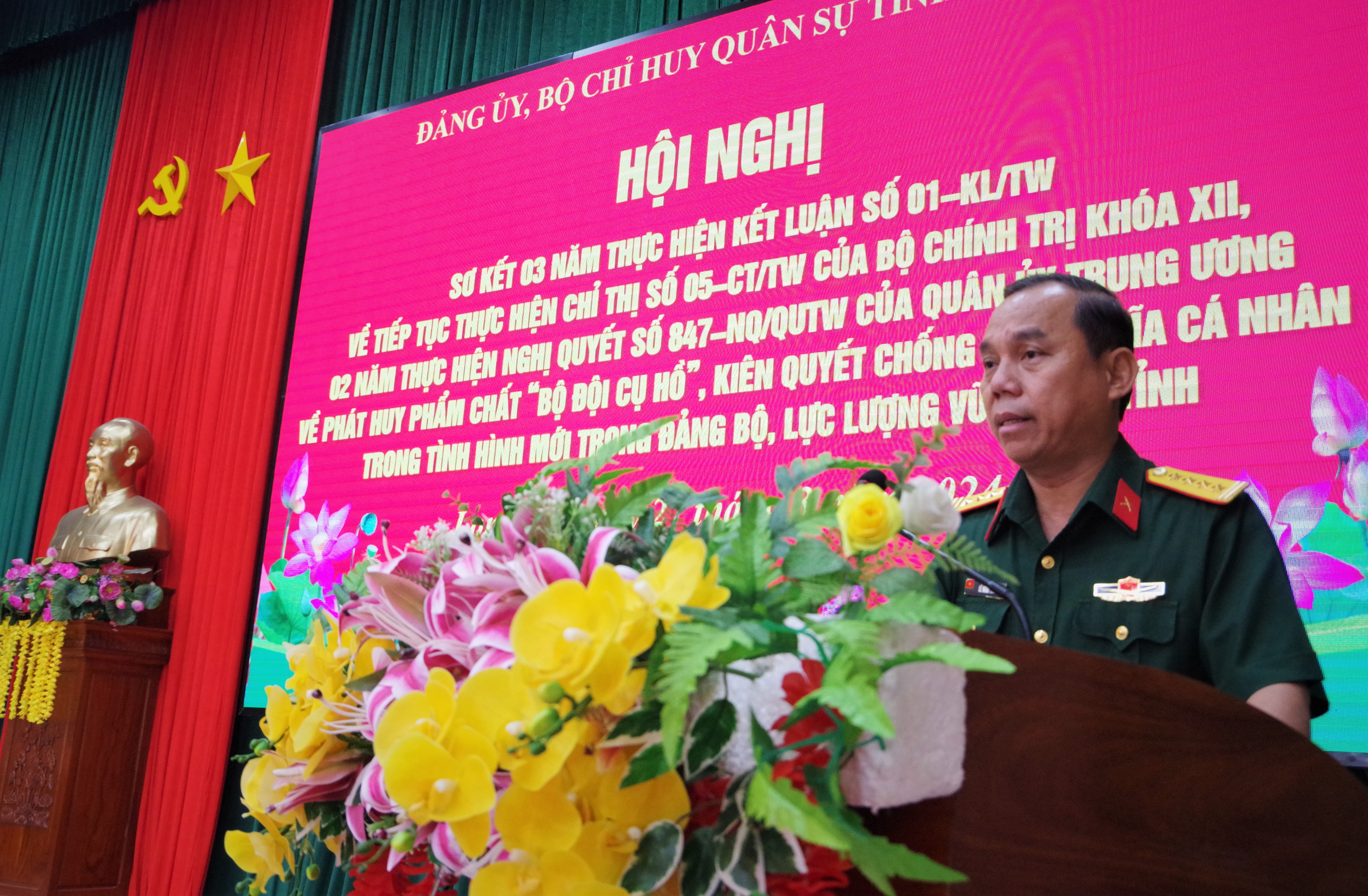 Đại tá Lê Minh Trung, Chính ủy Bộ CHQS tỉnh kết luận hội nghị.