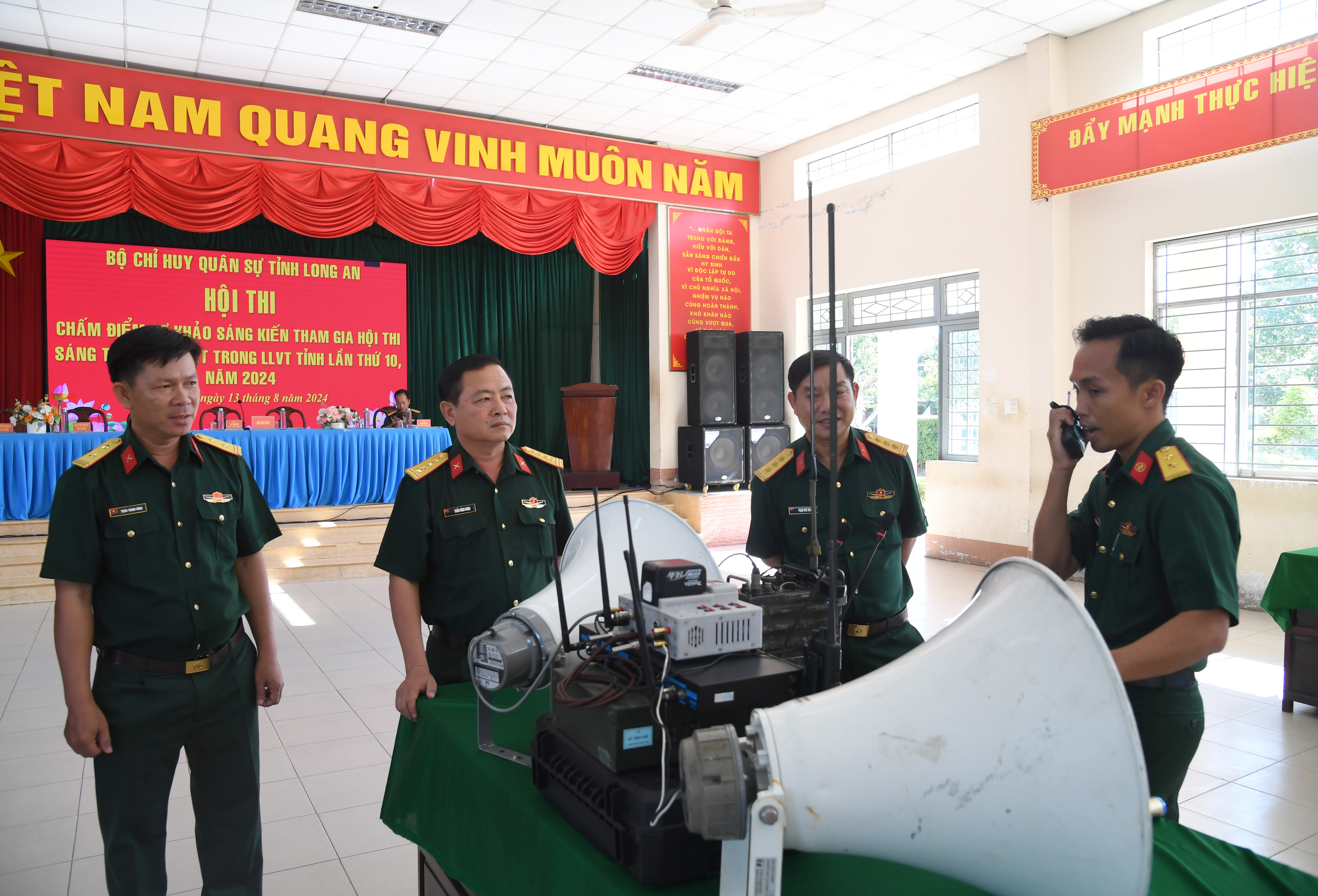 Với sự đầu tư công phu, mang hàm lượng chất xám cao, Ban giám khảo đánh giá cao các sáng kiến mang lại hiệu quả trong thực tế như: Thiết bị chế áp Flycam của Ban CHQS thị xã Kiến Tường; hệ thống âm thanh di động phục vụ diễn tập của Tiểu đoàn 1, Trung đoàn 738…