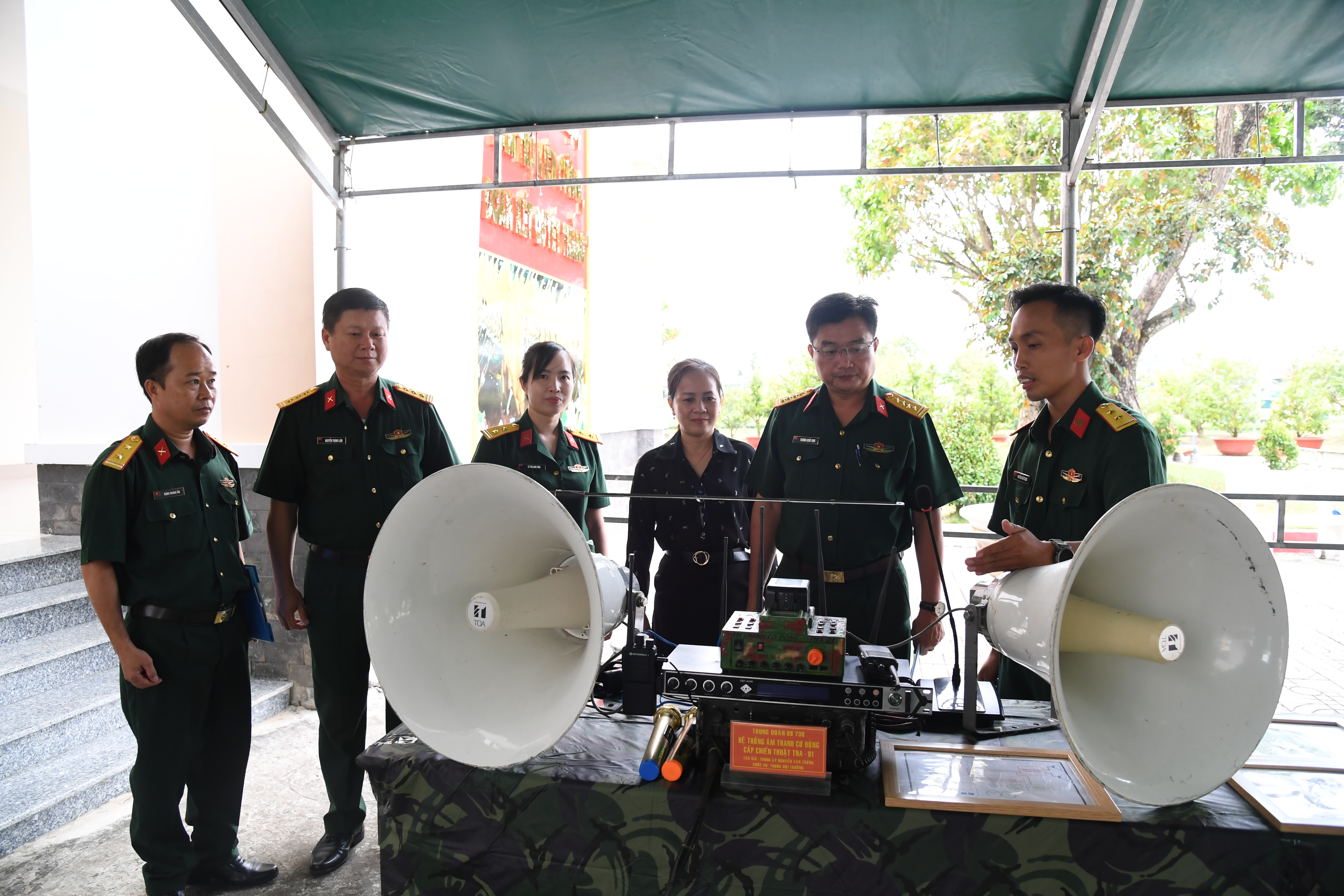 Đại biểu tham quan sáng kiến “Hệ thống âm thanh cơ động cấp chiến thuật” đạt giải nhất Hội thi sáng tạo kỹ thuật LLVT tỉnh Long An năm 2024.