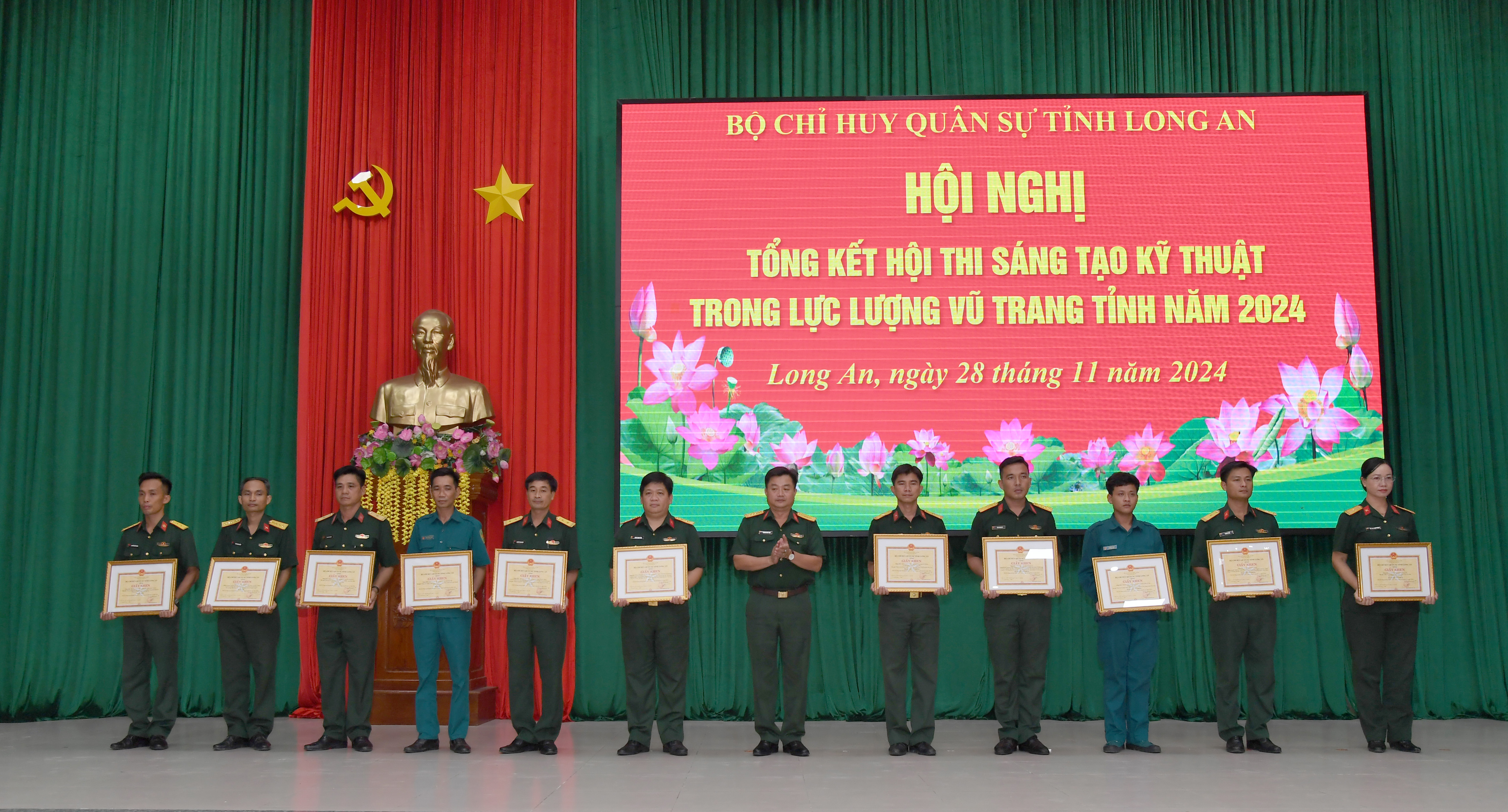 Nhân dịp này, Bộ CHQS tỉnh Long An trao thưởng cho 11 tác giả, nhóm tác giả có sáng kiến tiêu biểu.