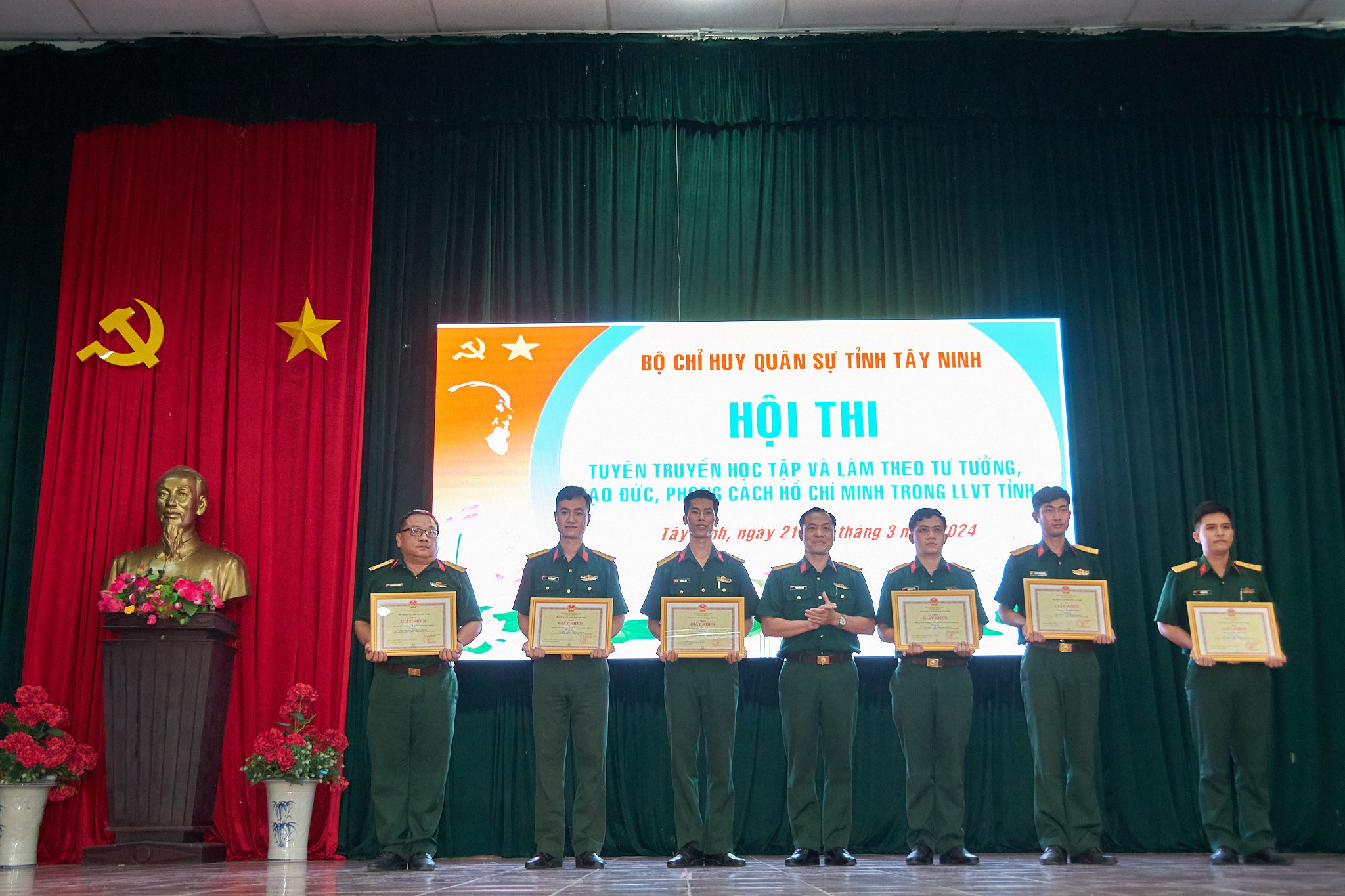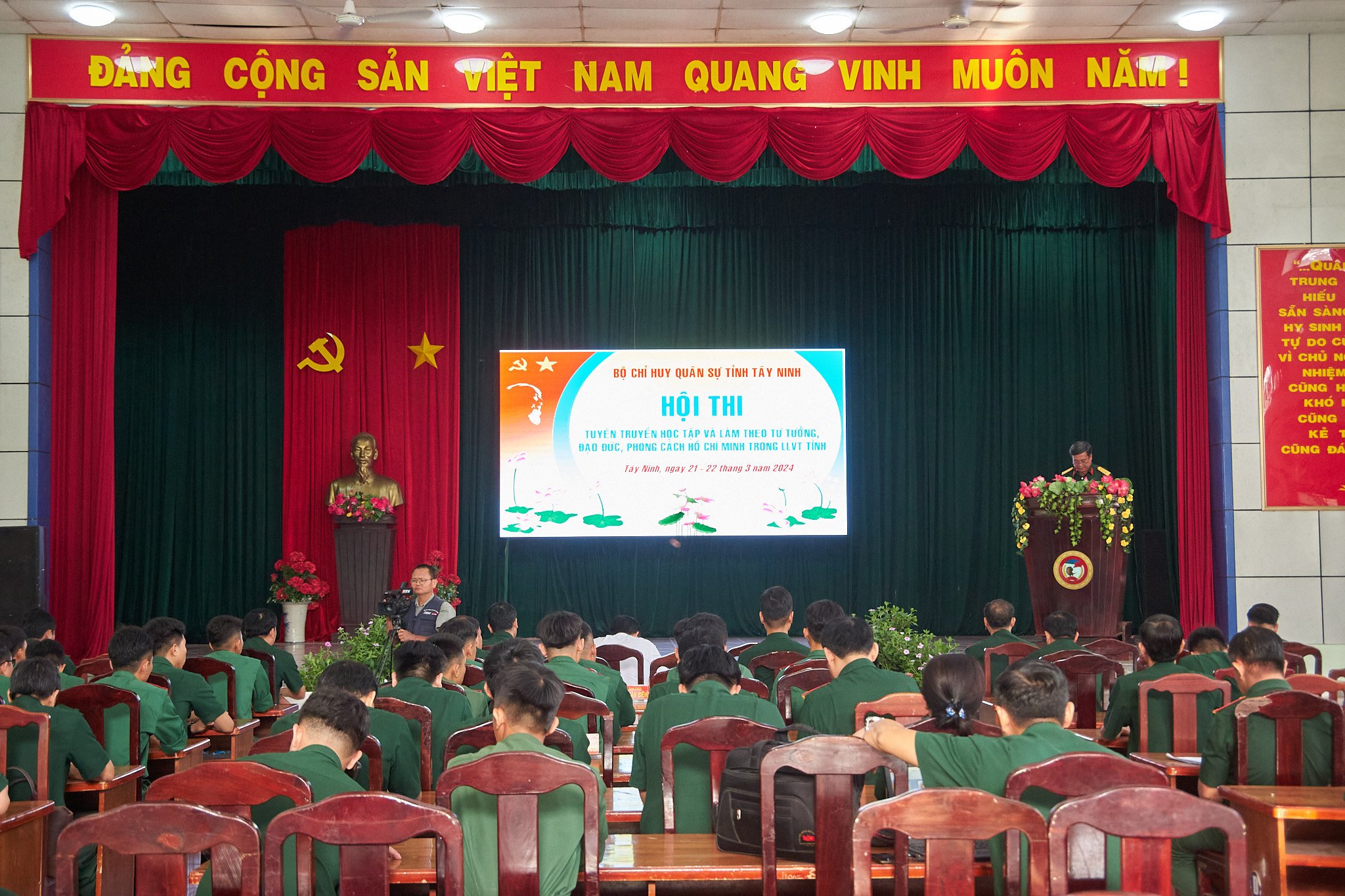 (QK7 Online) - Trong 2 ngày 21 và 22/3, Bộ Chỉ huy quân sự (CHQS) tỉnh Tây Ninh tổ chức Hội thi tuyên truyền học tập và làm theo tư tưởng, đạo đức, phong cách Hồ Chí Minh. Đại tá Đỗ Thành Việt, Phó Chính ủy Bộ CHQS tỉnh dự và chỉ đạo hội thi.