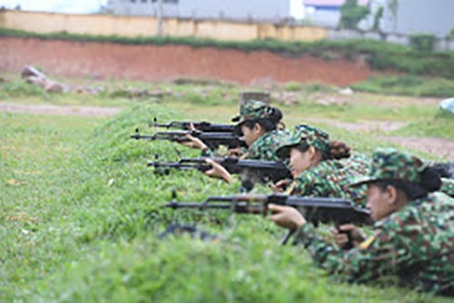 Các nữ vận động viên Đội tuyển Quân y huấn luyện nội dung thi bắn súng.