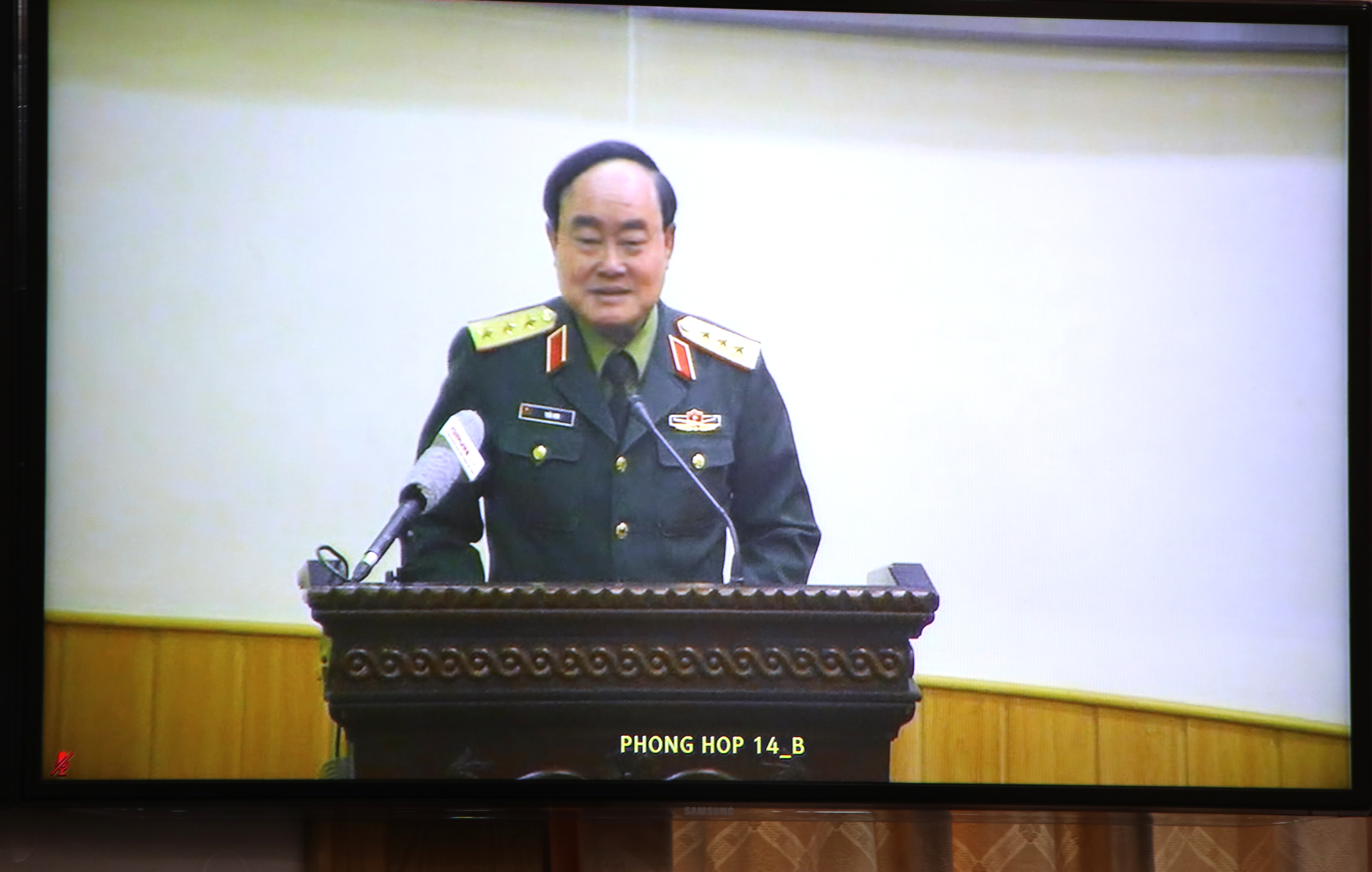 Thượng tướng Trần Đơn - Thứ trưởng Bộ Quốc phòng chủ trì hội nghị. (Ảnh chụp màn hình)
