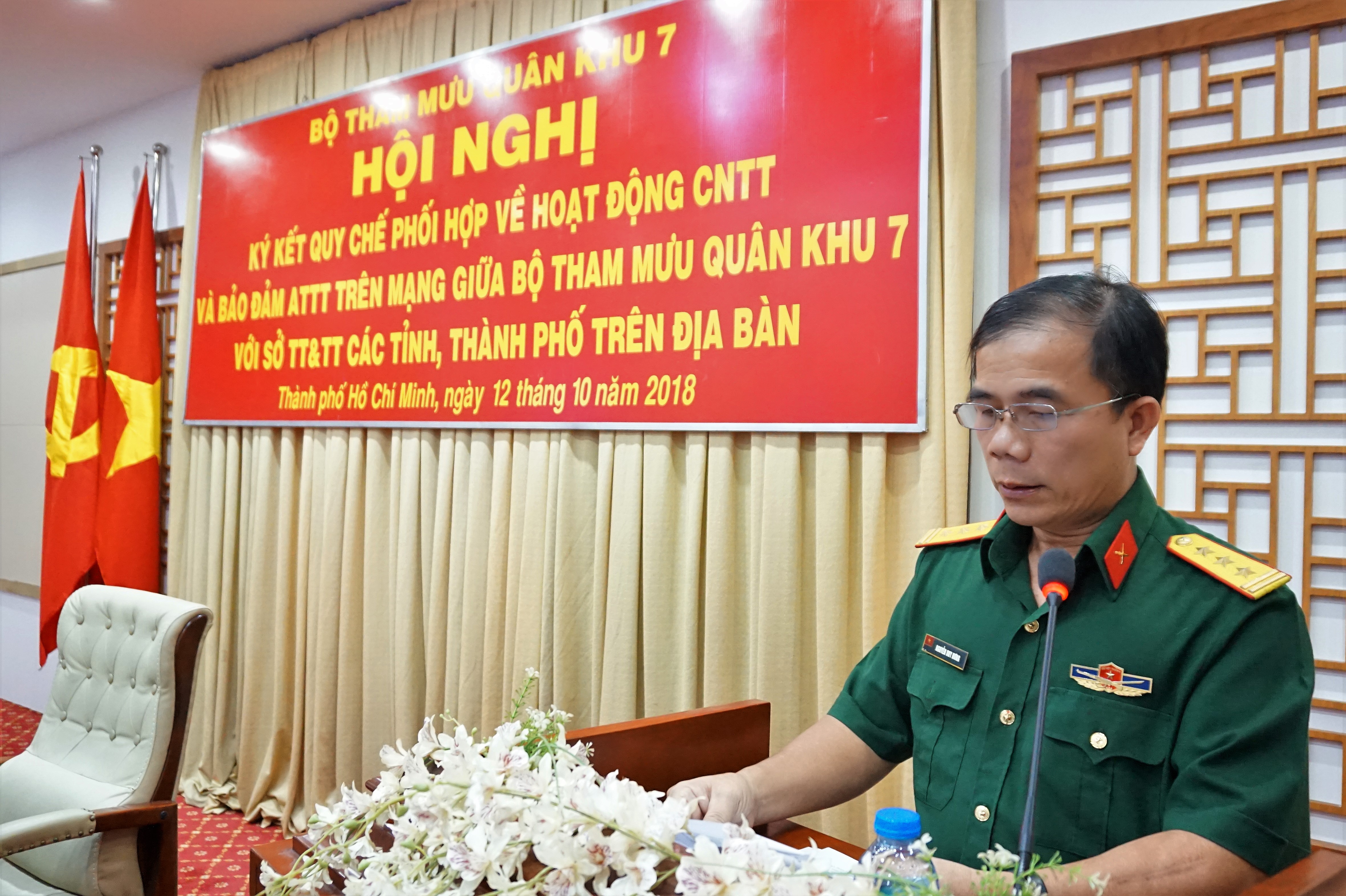 Thông qua quy chế phối hợp đẩy mạnh ứng dụng, phát triển CNTT và bảo đảm an toàn, an ninh thông tin trên mạng giữa Bộ Tham mưu Quân khu 7 với Sở Thông tin và Truyền thông các tỉnh, thành phố trên địa bàn. Chú trọng tổ chức thu thập, phát hiện, cung cấp và trao đổi thông tin liên quan đến hoạt động bảo đảm an toàn, an ninh thông tin, bảo vệ hệ thống thông tin trọng yếu của các tỉnh và thành phố, phòng, chống các hành vi vi phạm pháp luật về an toàn, an ninh thông tin. Định kỳ tổ chức sơ kết rút kinh nghiệm và đề xuất với Ủy ban nhân dân các tỉnh và thành phố có sự chỉ đạo phù hợp, kịp thời trong tình hình mới.