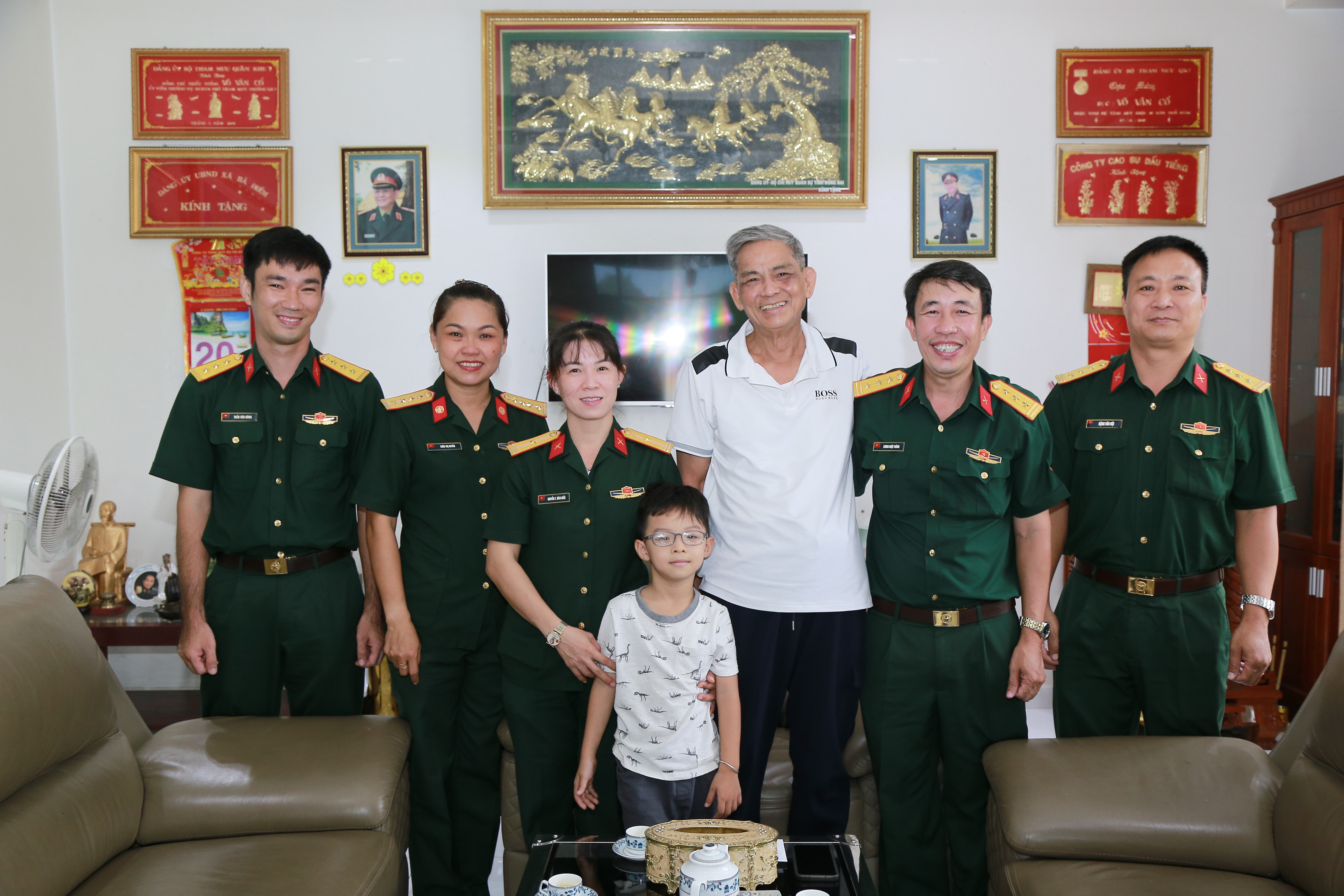 Đoàn tặng quà, chúc sức khỏe Thiếu tướng Võ Văn Cổ.