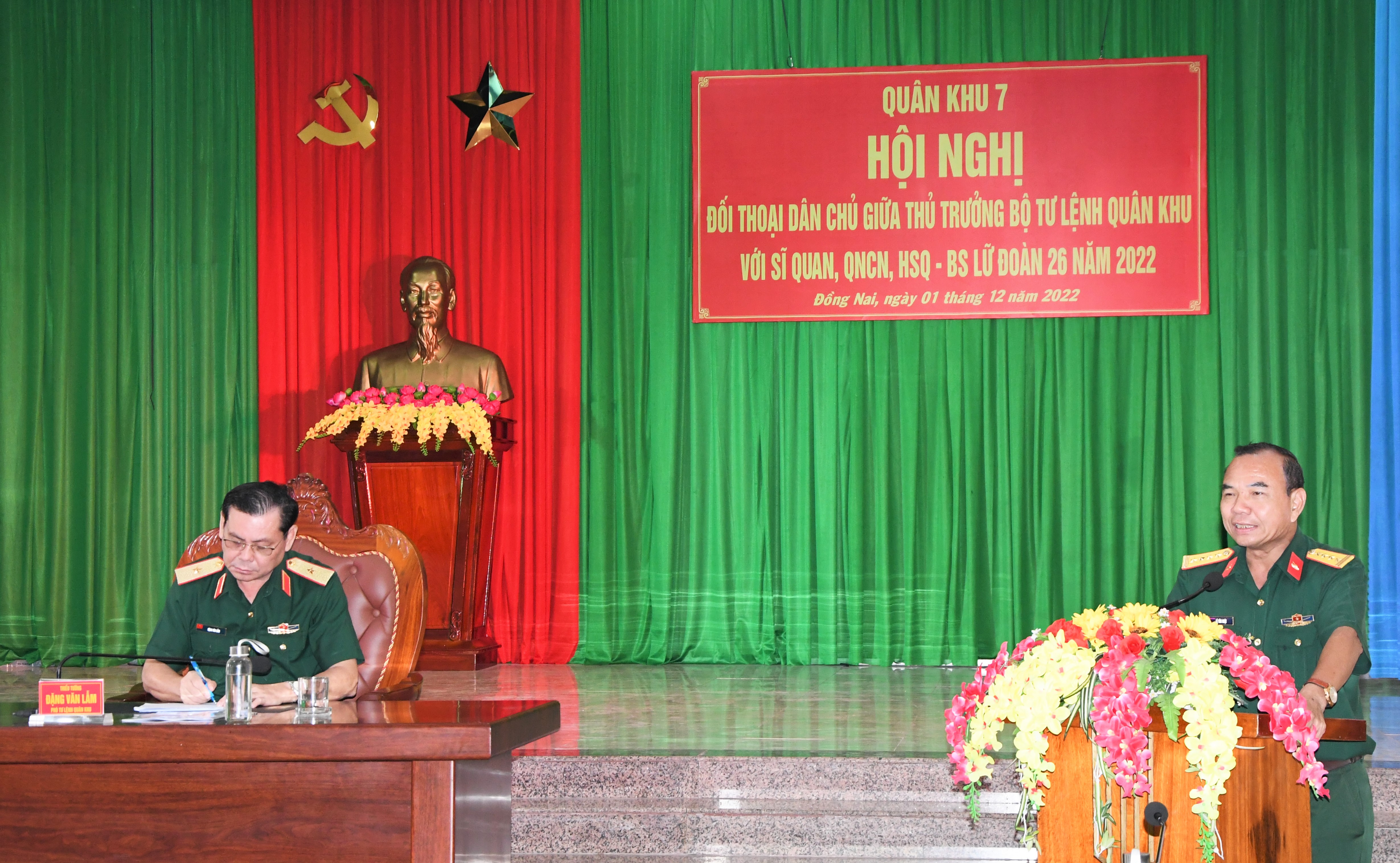 Phát biểu kết luận hội nghị, Thiếu tướng Đặng Văn Lẫm, Phó Tư lệnh Quân khu đánh giá cao tinh thần dân chủ trong đơn vị của Lữ đoàn 26, đã tổ chức quán triệt và thực hiện nghiêm các chỉ thị, nghị quyết, hướng dẫn của cấp trên về thực hiện quy chế dân chủ cơ sở. Điển hình là tổ chức đối thoại định kỳ giữa cấp trên với cấp dưới được thực hiện thường xuyên, theo đúng quy chế, được lồng ghép vào trong các buổi sinh hoạt ngày, tuần, sinh hoạt ngày chính trị văn hóa tinh thần ở cấp Đại đội, Tiểu đoàn. Đối với cấp Lữ đoàn thực hiện theo hàng quý, phân công lãnh đạo, chỉ huy Lữ đoàn xuống dự, trực tiếp đối thoại với Tiểu đoàn, các Đại đội trực thuộc và Khối cơ quan đảm bảo dân chủ, khách quan, cầu thị, phát triển và tiến bộ. Thông qua đối thoại mọi tâm tư, thắc mắc của cán bộ, chiến sĩ được giãi bày, qua đó giúp chỉ huy đơn vị nắm tư tưởng bộ đội, kịp thời giải quyết những khó khăn giúp bộ đội yên tâm công tác.