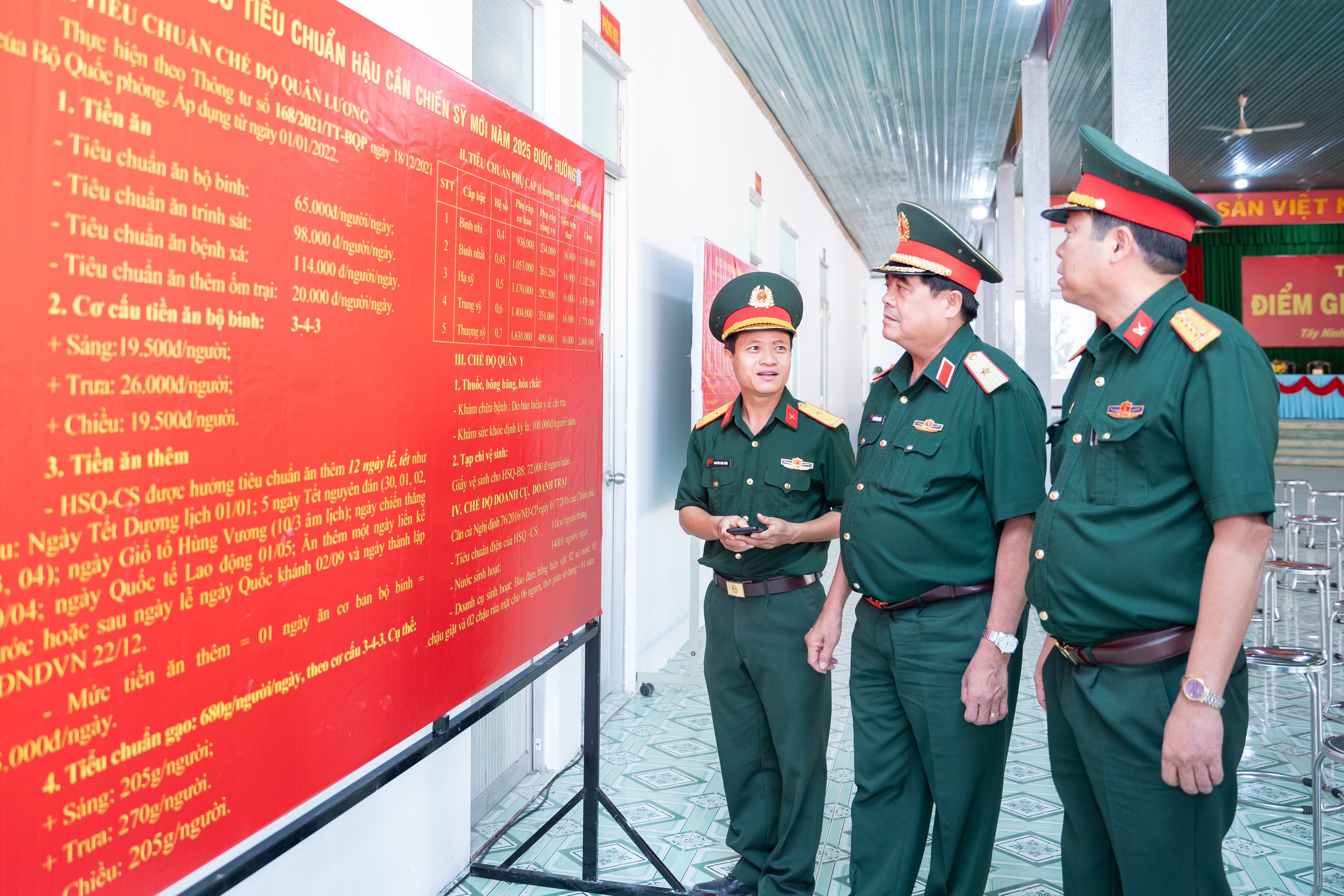 Đoàn công tác BTL Quân khu kiểm tra điểm tiếp nhận chiến sĩ mới tại Trung đoàn 4, Sư đoàn 5.