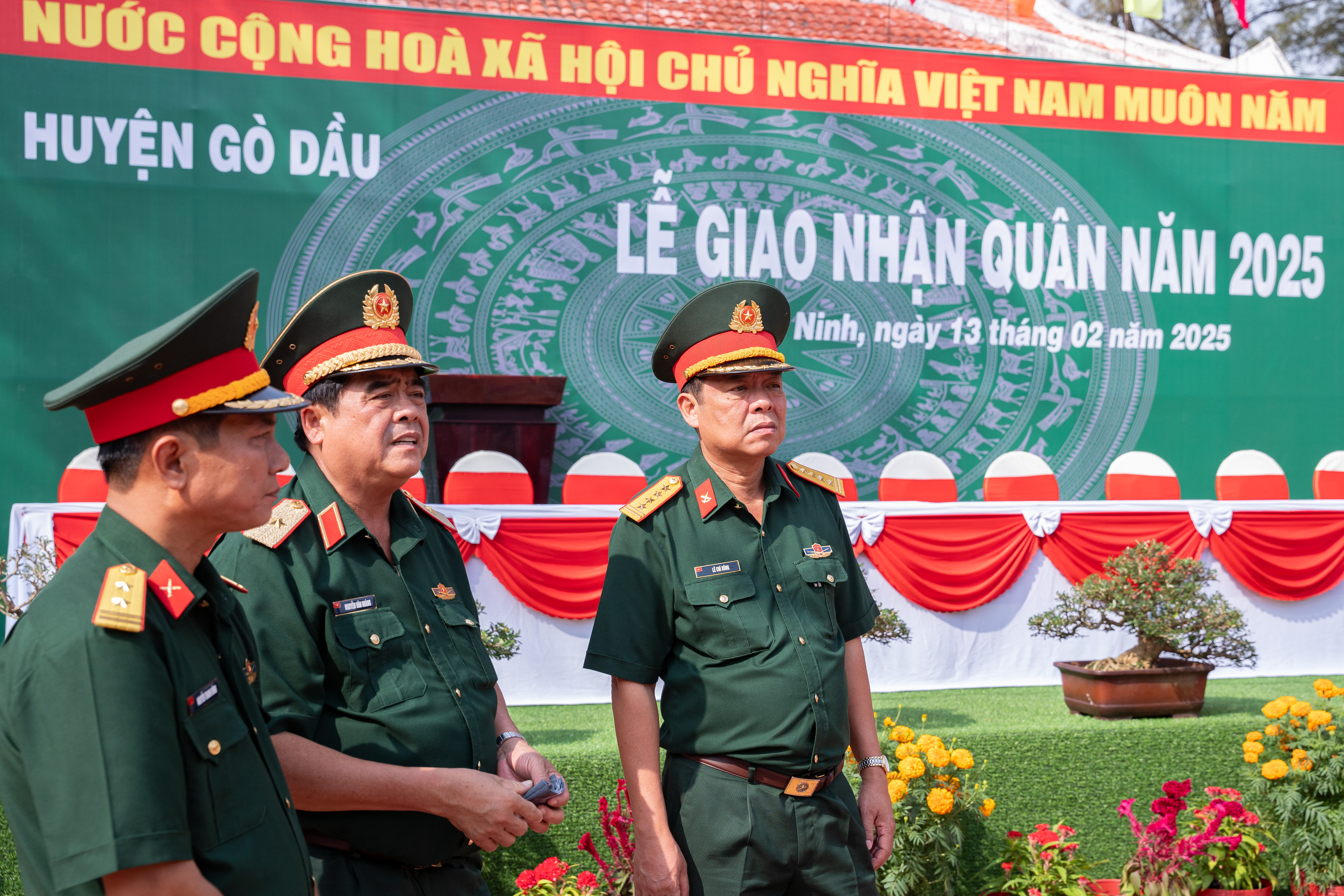 Dịp này, đoàn đến kiểm tra công tác chuẩn bị hội trại tòng quân huyện Gò Dầu, tỉnh Tây Ninh. Đồng chí Nguyễn Văn Nhu, Phó Bí thư Huyện ủy, Chủ tịch UBND huyện tiếp đoàn công tác. Năm 2025, huyện Gò Dầu được giao chỉ tiêu tuyển chọn là 269 công dân. Trong đó, thực hiện NVQS 226 công dân (chính thức 215, dự phòng 11) và thực hiện nghĩa vụ Công an 43 công dân (chính thức 41, dự phòng 2) giao cho các đơn vị: Lữ đoàn Pháo binh 75; Trung đoàn Bộ binh 5 (Sư đoàn 5); Tiểu đoàn Vệ binh 180; Trung đoàn Bộ binh 174; Bộ Tư lệnh Cảnh sát Cơ động (K02); Cục An ninh điều tra (A09); Cục Cảnh sát quản lý trại giam, cơ sở giáo dục bắt buộc, trường giáo dưỡng (C10) và Công an tỉnh. Đến thời điểm hiện nay, hội đồng NVQS huyện đã làm tốt mọi công tác chuẩn bị cho lễ giao nhận quân diễn ra đúng kế hoạch, đảm bảo an toàn.