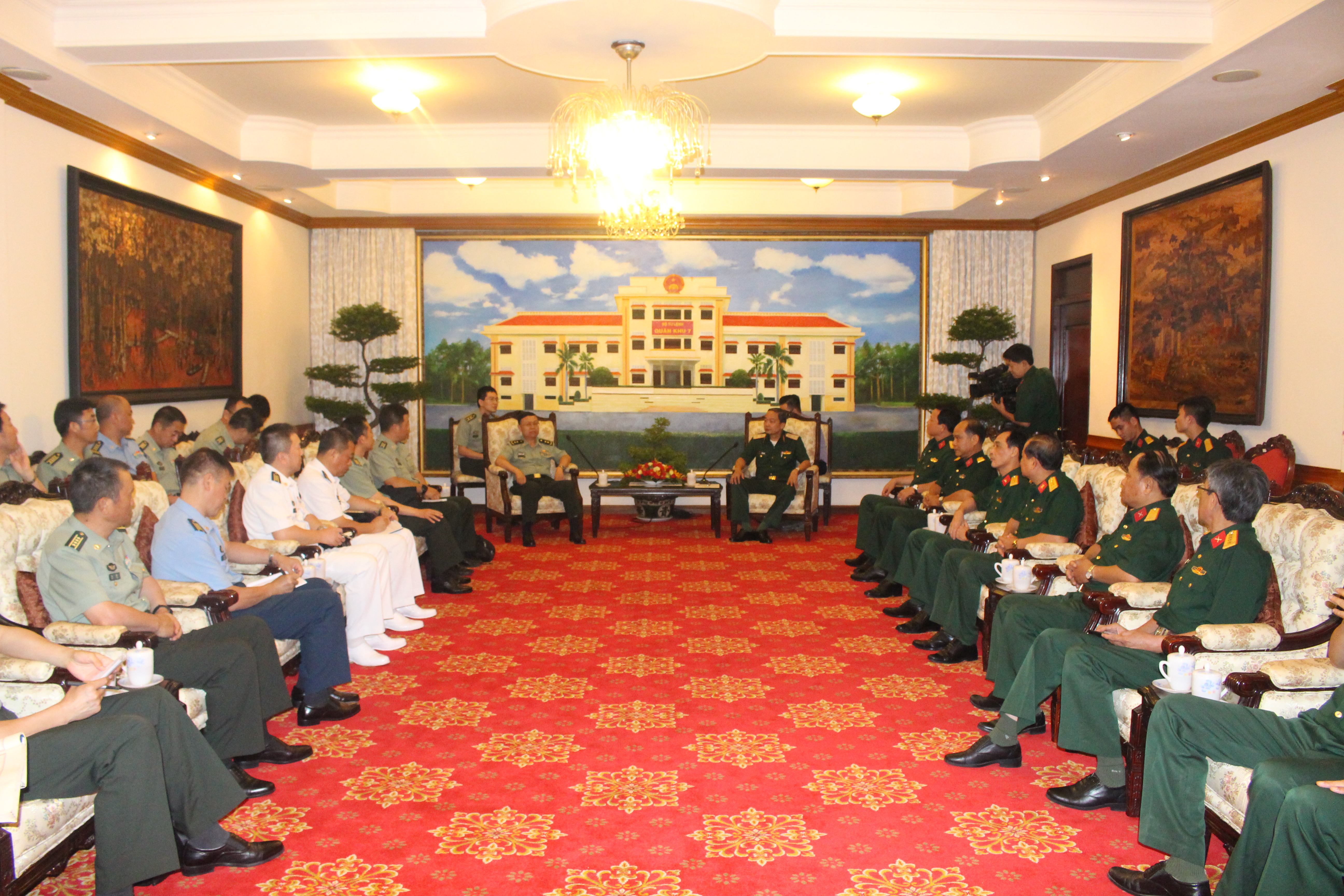 Tiếp đoàn, Trung tướng Phạm Văn Dỹ, Bí thư Đảng ủy, Chính ủy Quân khu 7 bày tỏ vui mừng được đón ngài trưởng đoàn cùng với các thành viên. Trong không khí ấm tình hữu nghị, Trung tướng Phạm Văn Dỹ đã ôn lại truyền thống lịch sử, văn hóa, mối quan hệ giữa hai nước suốt mấy ngàn năm qua. Trong suốt chiều dài lịch sử phát triển dân tộc hai nước, đã có nhiều người Việt Nam được Trung Quốc phong làm “Lưỡng quốc Trạng Nguyên”; nhiều tướng lĩnh hai nước được phong “Lưỡng quốc Tướng quân”. Bên cạnh đó, Trung tướng Phạm Văn Dỹ cũng nhắc lại lịch sử Quân Giải phóng Nhân dân Trung Quốc đã giúp đỡ QĐND Việt Nam trong thời kỳ kháng chiến chống Mỹ. Đến nay, hai nước đã đạt được nhiều kết quả tốt đẹp trên nhiều lĩnh vực như kinh tế, chính trị, văn hóa, xã hội, du lịch, đào tạo…