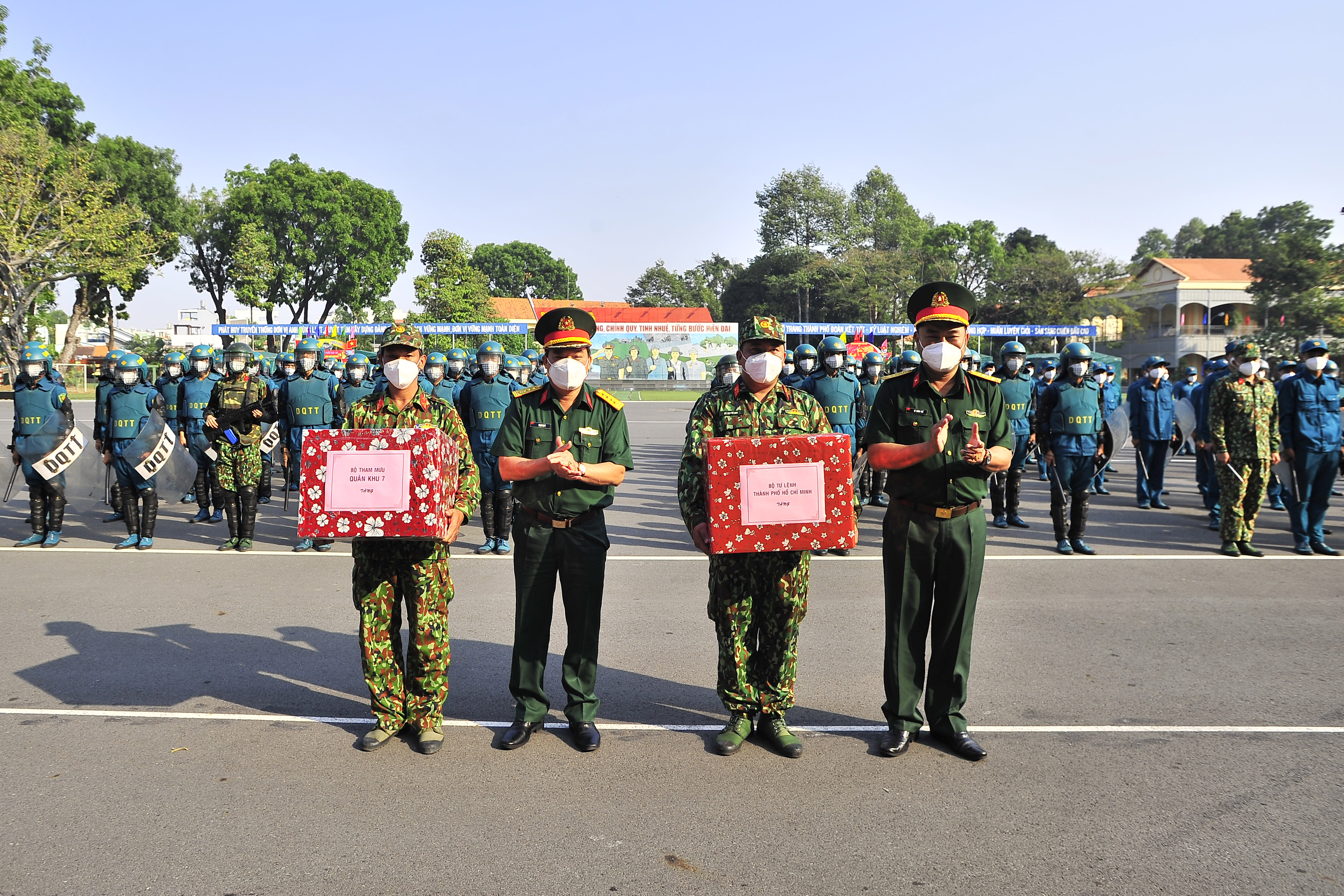Đại tá Lê Xuân Thế, Phó Tư lệnh, Tham mưu trưởng Bộ Tư lệnh TP Hồ Chí Minh trao giấy khen cho các tập thể, cá nhân.