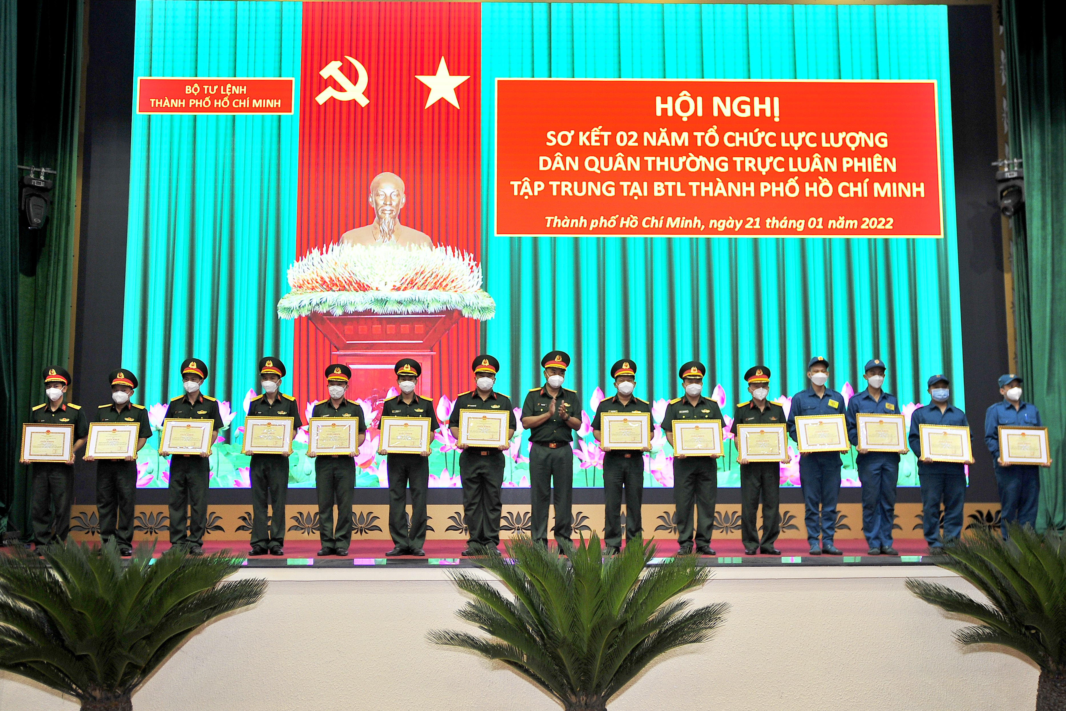 (QK7 Online) – Ngày 21/1, Bộ Tư lệnh TP Hồ Chí Minh tổ chức hội nghị sơ kết 2 năm tổ chức lực lượng dân quân thường trực luân phiên tập trung huấn luyện tại Bộ Tư lệnh Thành phố. Đến dự có Đại tá Phạm Phú Ý, Phó Tham mưu trưởng Quân khu 7. Đại tá Lê Xuân Thế, Phó Tư lệnh, Tham mưu trưởng Bộ Tư lệnh TP Hồ Chí Minh chủ trì hội nghị.
