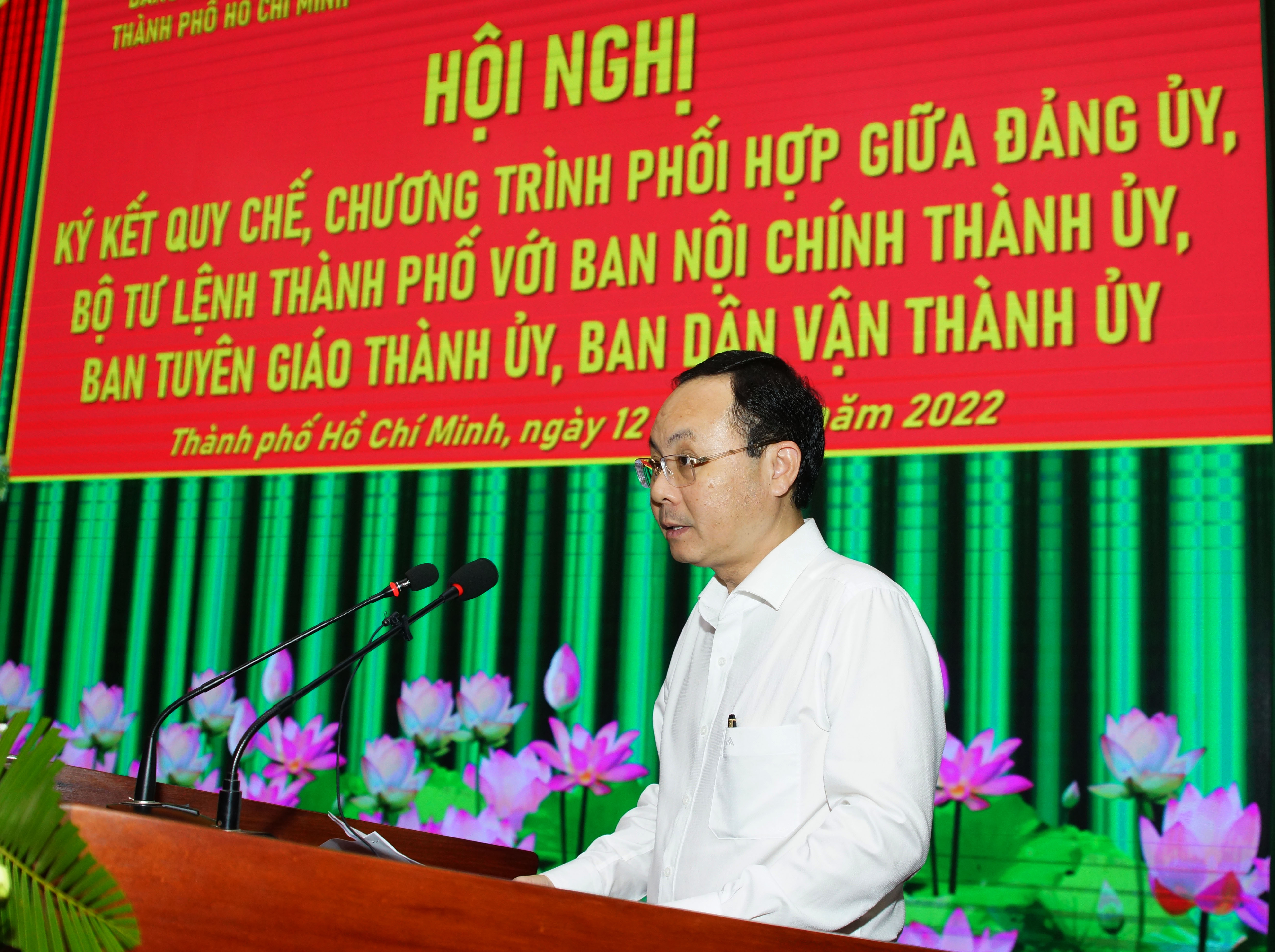 Chương trình phối hợp giữa Ban Tuyên giáo Thành ủy với Bộ Tư lệnh Thành phố giai đoạn 2022 – 2025: Phối hợp định hướng tư tưởng và chỉ đạo, hướng dẫn tuyên truyền cho cán bộ, đảng viên, chiến sĩ và Nhân dân về những chủ trương, đường lối của Đảng, chính sách, pháp luật của Nhà nước về quân sự, quốc phòng, nhất là các chiến lược, nghị quyết, kết luận, đề án quan trọng về quân sự, quốc phòng trong tình hình mới. Triển khai thực hiện Đề án 05-ĐA/TU của Ban Thường vụ Thành ủy về “Tuyên truyền, lan tỏa thông tin tích cực, đấu tranh phản bác các quan điểm sai trái, thù địch trên internet, mạng xã hội tại Thành phố Hồ Chí Minh; Tuyên truyền, định hướng tư tưởng khi triển khai thực hiện các chủ trương, chính sách, chiến lược, quy hoạch, kế hoạch, chương trình, dự án phát triển kinh tế - văn hóa - xã hội gắn với củng cố quốc phòng, an ninh; Tuyên truyền, nhân rộng những tố mới, mô hình, cách làm hay, sáng tạo, hiệu quả.