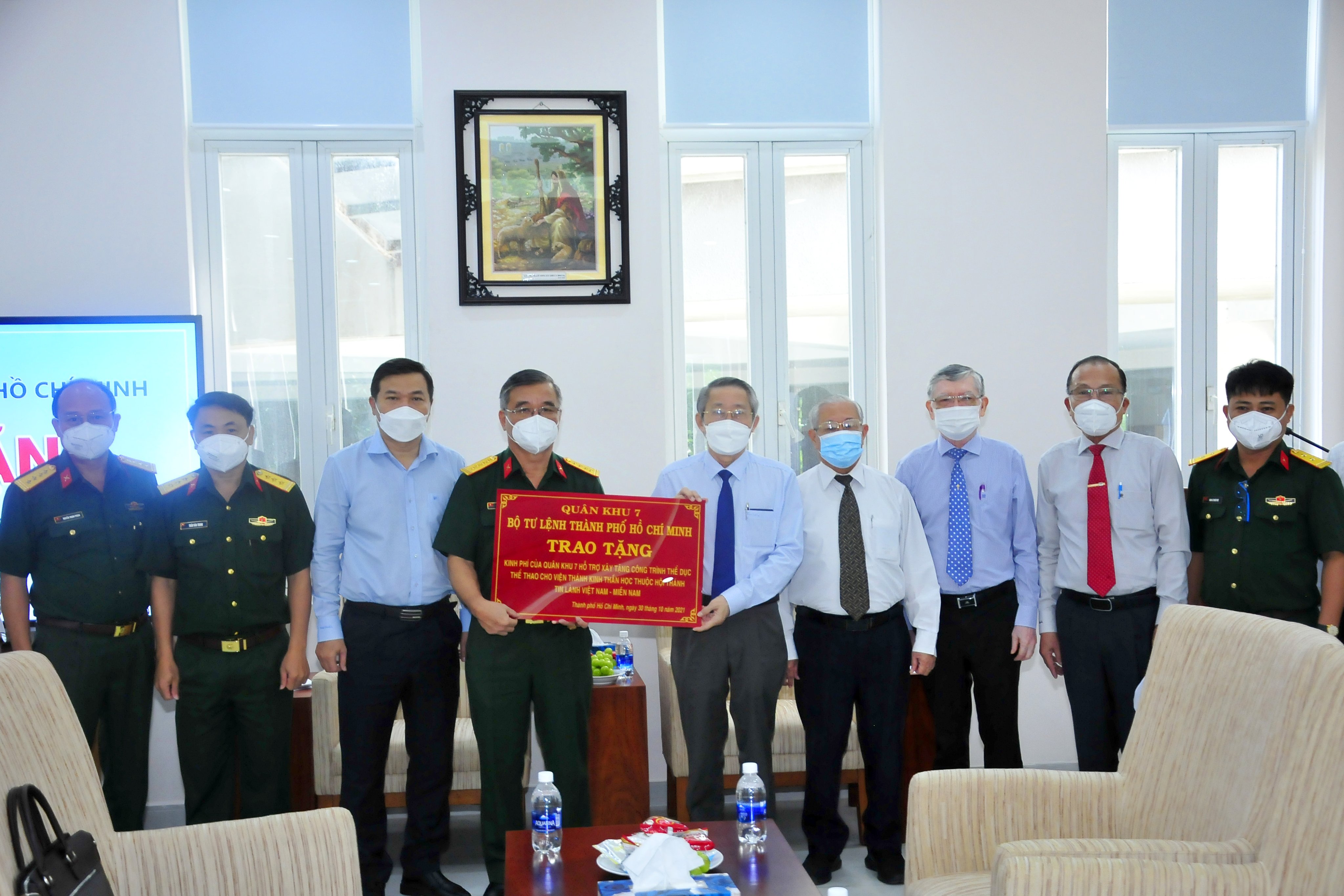 (QK7 Online) - 30/10, Bộ Tư lệnh TPHCM trao tặng kinh phí của Quân khu 7 hỗ trợ xây dựng công trình thể dục thể thao cho Viện Thánh kinh Thần học thuộc Hội thánh Tin lành Việt Nam (miền Nam).