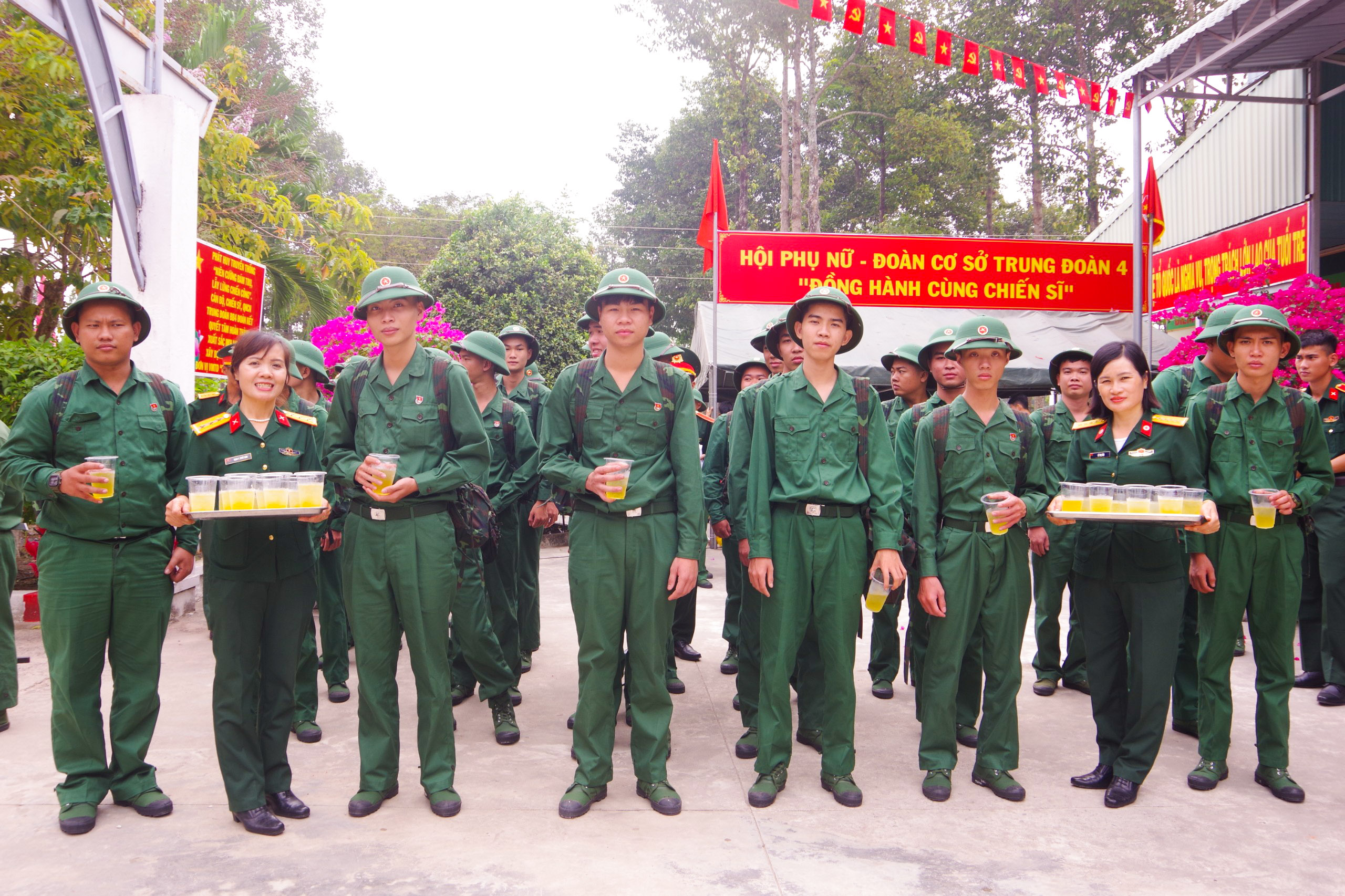 Hội phụ nữ Trung đoàn 4 tiếp nước, đón chào chiến sĩ mới.