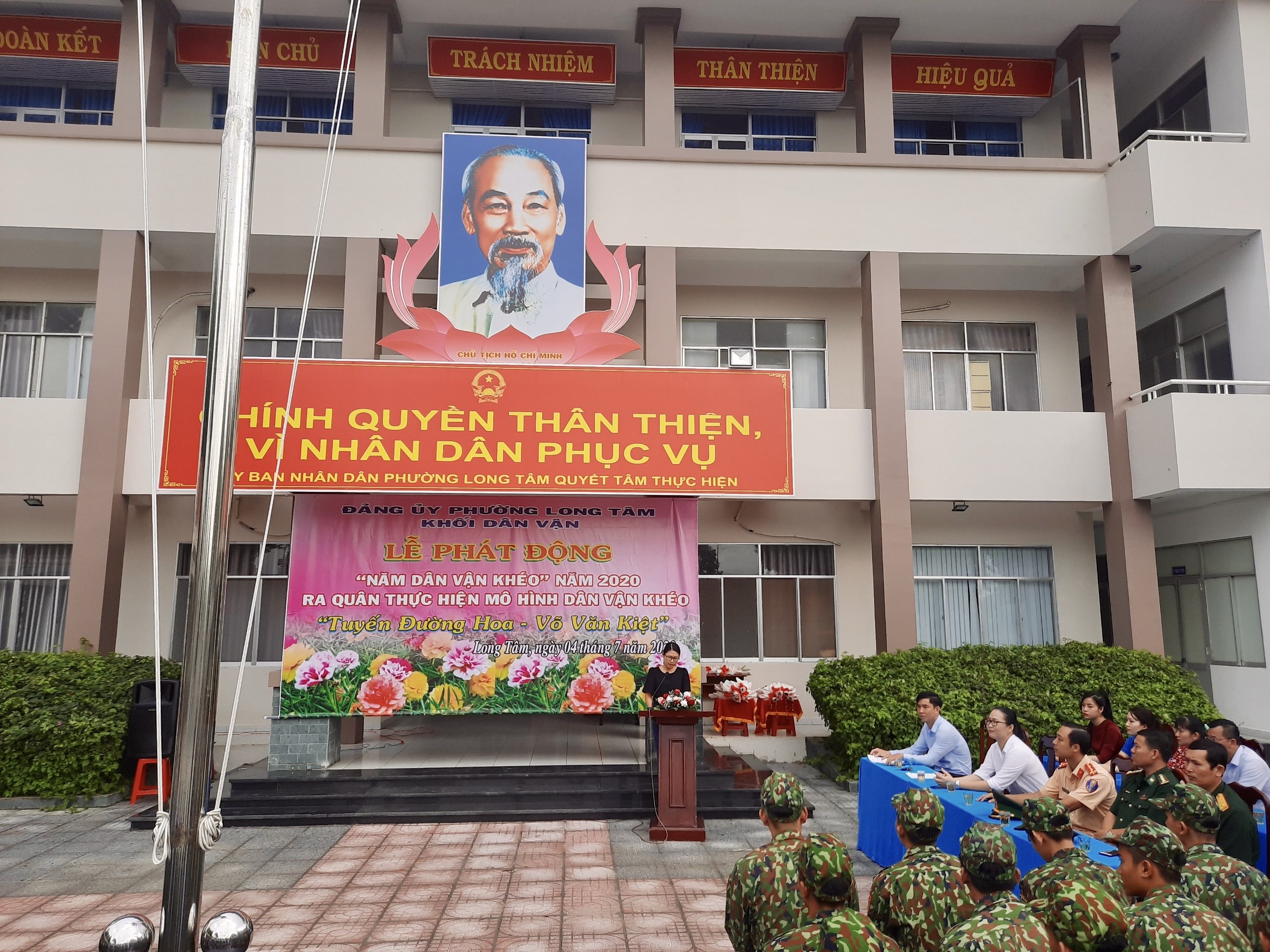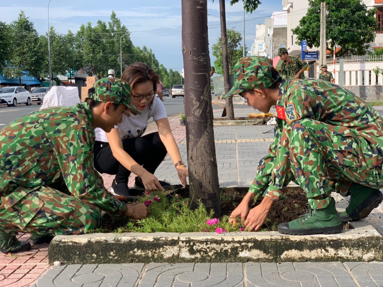 Hơn 200 cán bộ, chiến sĩ, đoàn viên thanh niên, hội viên Hội LHPN, CCB và người dân dọn vệ sinh, thu gom rác, xáo cỏ, cải tạo đất để trồng hoa mười giờ và hoa sam trên 140 bồn cây dọc tuyến đường Võ Văn Kiệt (thuộc địa bàn khu phố 2 và khu phố 5, phường Long Tâm, TP.Bà Rịa), với tổng chiều dài 1km. Tổng kinh phí thực hiện hơn 16 triệu đồng do các cá nhân, doanh nghiệp trên địa bàn TP.Bà Rịa tài trợ và các hộ dân sống dọc tuyến đường Võ Văn Kiệt đóng góp.