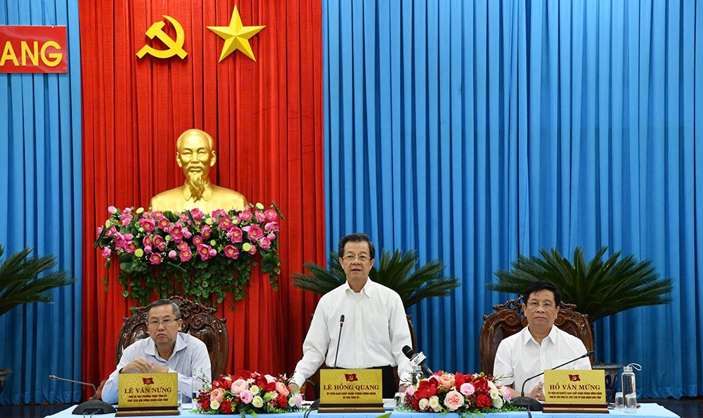 Phát biểu kết luận cuộc họp, Bí thư Tỉnh ủy An Giang Lê Hồng Quang đề nghị, các thành viên Ban chỉ đạo, Tổ giúp việc, các nhà thầu tiếp tục phát huy tối đa tinh thần trách nhiệm, căn cứ vào nhiệm vụ được phân công khẩn trương triển khai thực hiện tốt nhiệm vụ trọng tâm được giao.