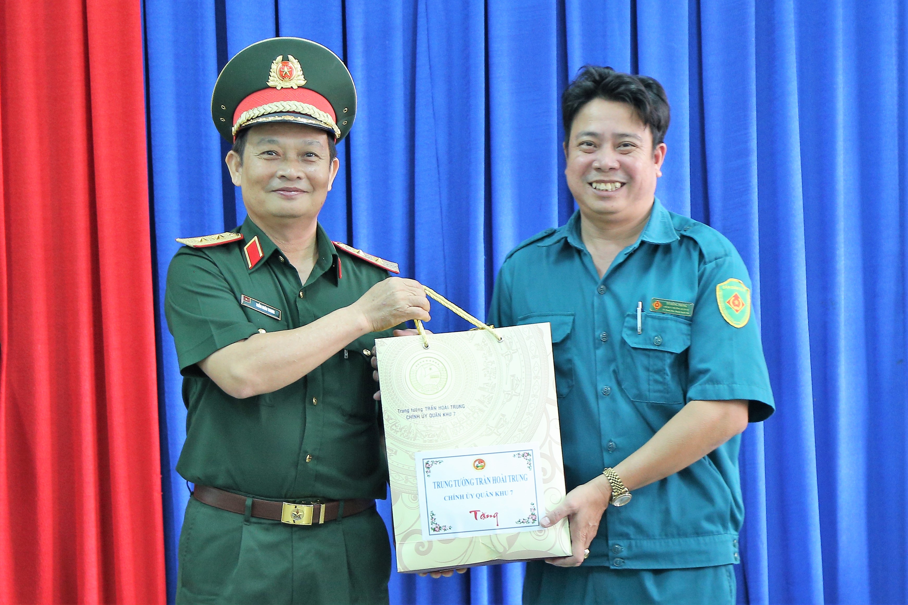 Trung tướng Trần Hoài Trung, Chính ủy Quân khu tặng quà cho Ban CHQS Thị trấn Phước Bửu, huyện Xuyên Mộc