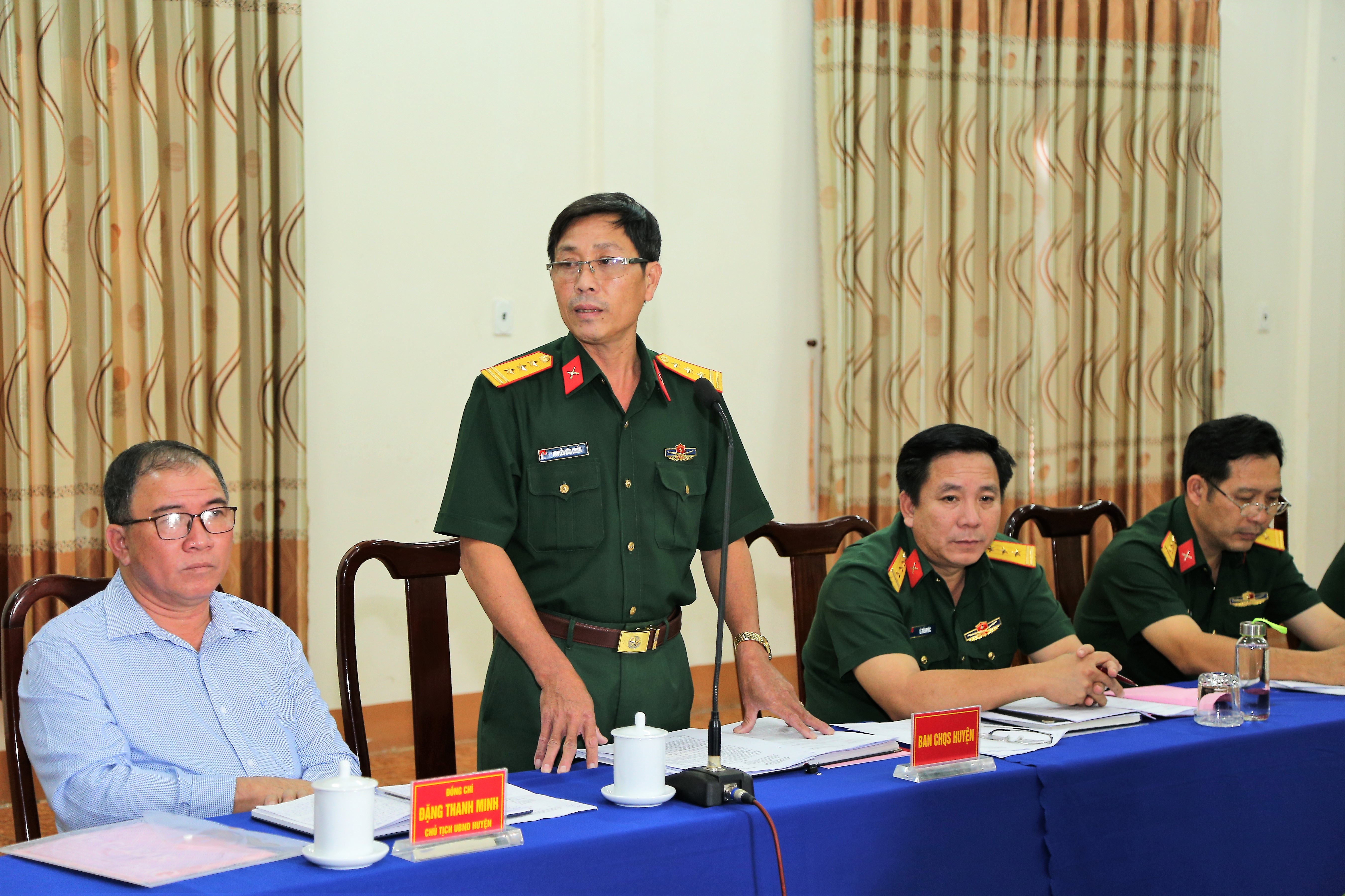 Sau khi nghe chỉ huy đơn vị báo cáo kết quả thực hiện nhiệm vụ quân sự - quốc phòng  7 tháng đầu năm 2019. Trong đó, nổi bật là đã tham mưu cho huyện ủy, UBND huyện lãnh đạo, chỉ đạo, triển khai thực hiện tốt nhiệm vụ quân sự, quốc phòng địa phương, nổi bật là nhiệm vụ huấn luyện, giáo dục chính trị cho các đối tượng, hội thi, hội thao đạt kết quả cao; Tập trung xây dựng lực lượng thường trực, lực lượng dự bị động viên đủ quân số, đảm bảo chất lượng.