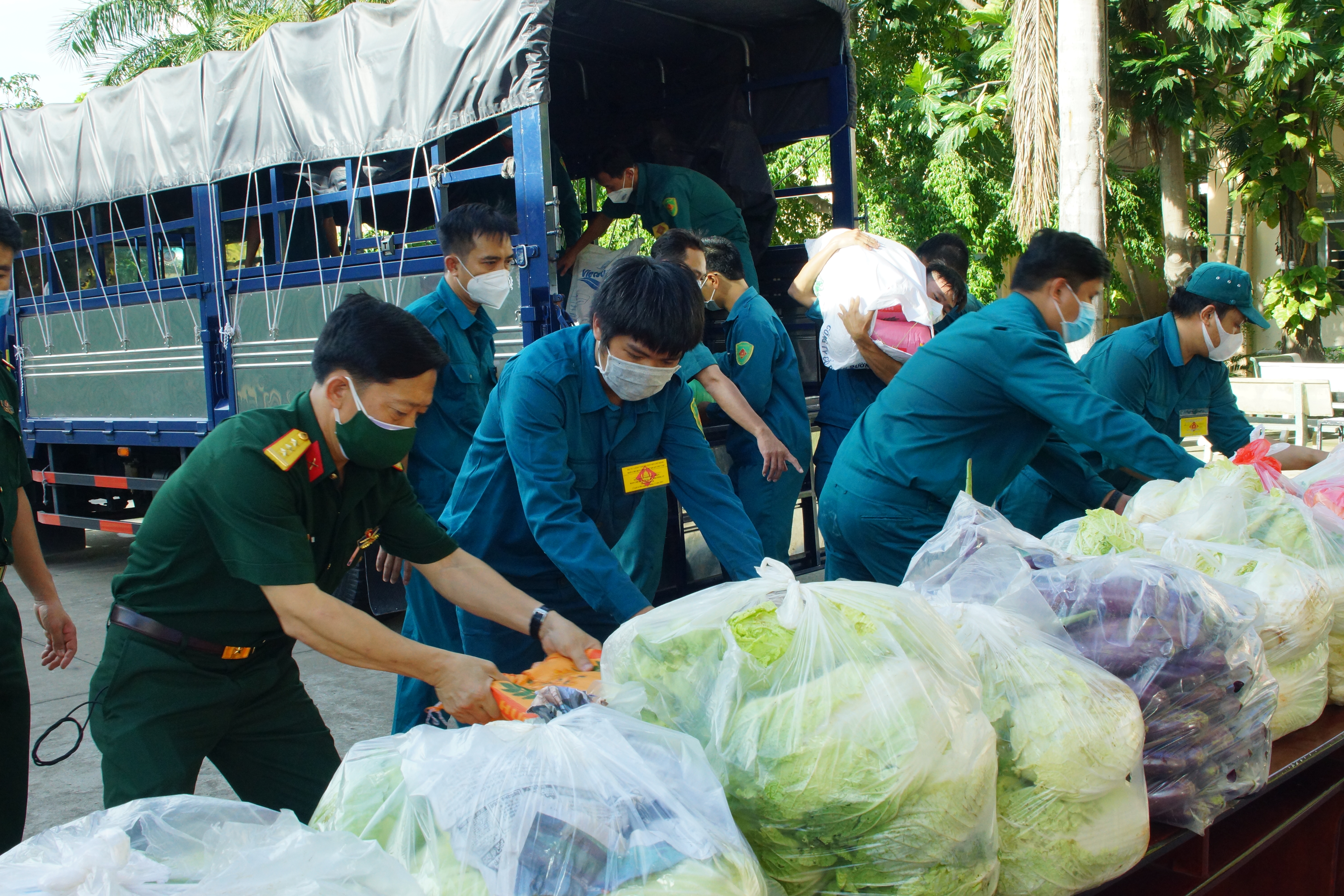Cán bộ, chiến sĩ Ban CHQS quận Gò Vấp và phường 17 chuyển quà về nơi tập kết