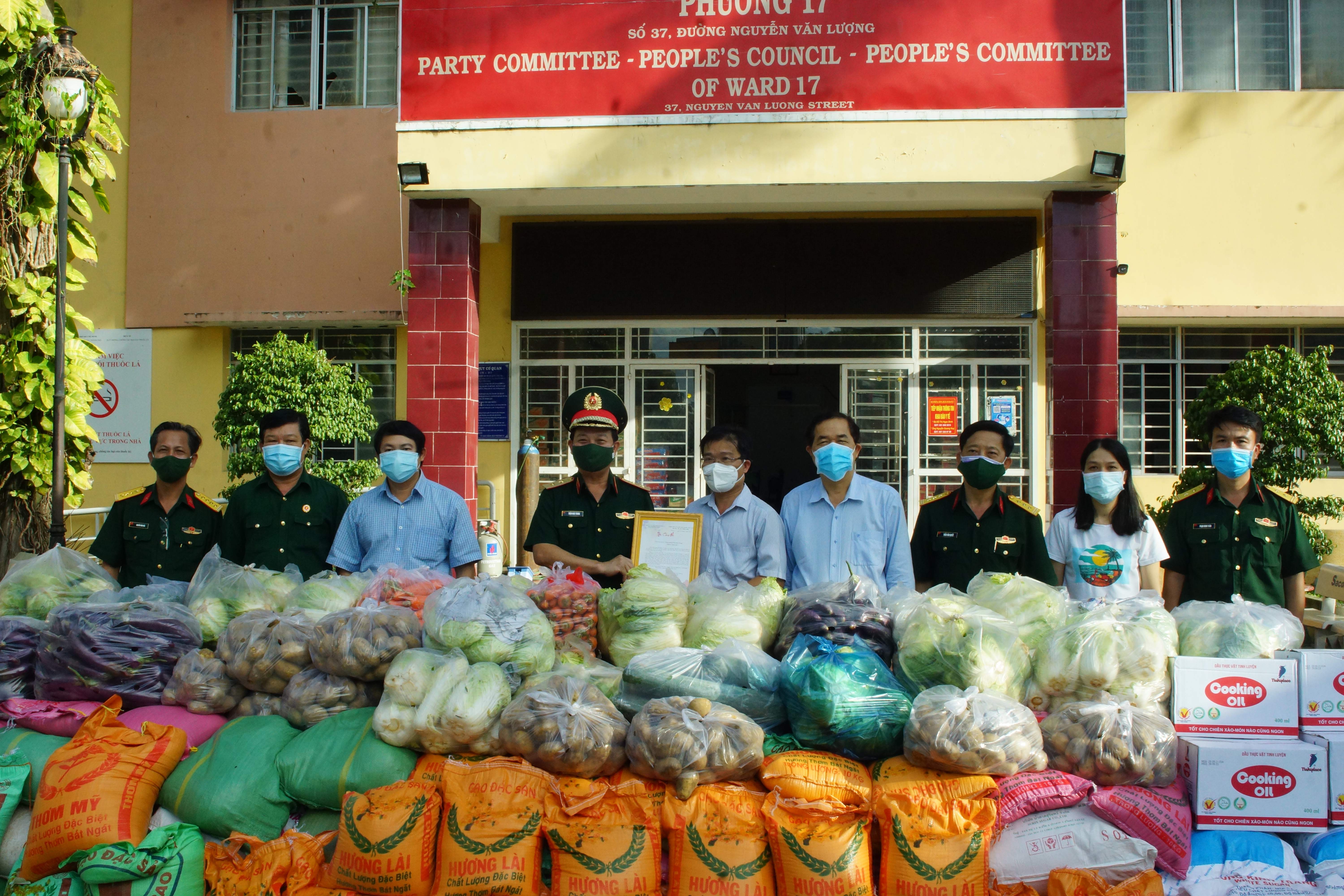 Thấu hiểu sự khó khăn trong những ngày dịch bệnh Covid-19 bùng phát tại Thành phố Hồ Chí Minh, Trung tướng Trần Hoài Trung đã trao tặng: 2 tấn gạo, 600 kg rau, củ quả, 150 kg đường, 10 thùng dầu ăn và 10 thùng nước tương nhằm chia sẻ khó khăn chung của người dân đang trong khu vực bị phong tỏa cũng như người dân phường 17.