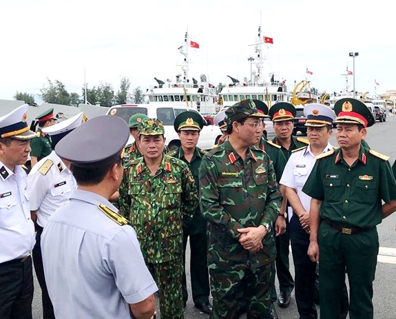 Thượng tướng Trần Quang Phương kiểm tra công tác phòng chống bão tại Vùng 4 Hải quân. Ảnh: Văn May