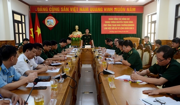 Trung tướng Nguyễn Trọng Bình kết luận buổi làm việc với Bộ tư lệnh Quân khu 5 và các đơn vị. Ảnh: Văn Chung