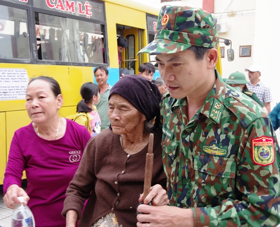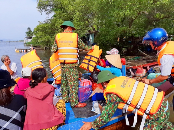 BĐBP Quảng Nam di dời nhân dân tránh bão. Ảnh: VĂN VINH.