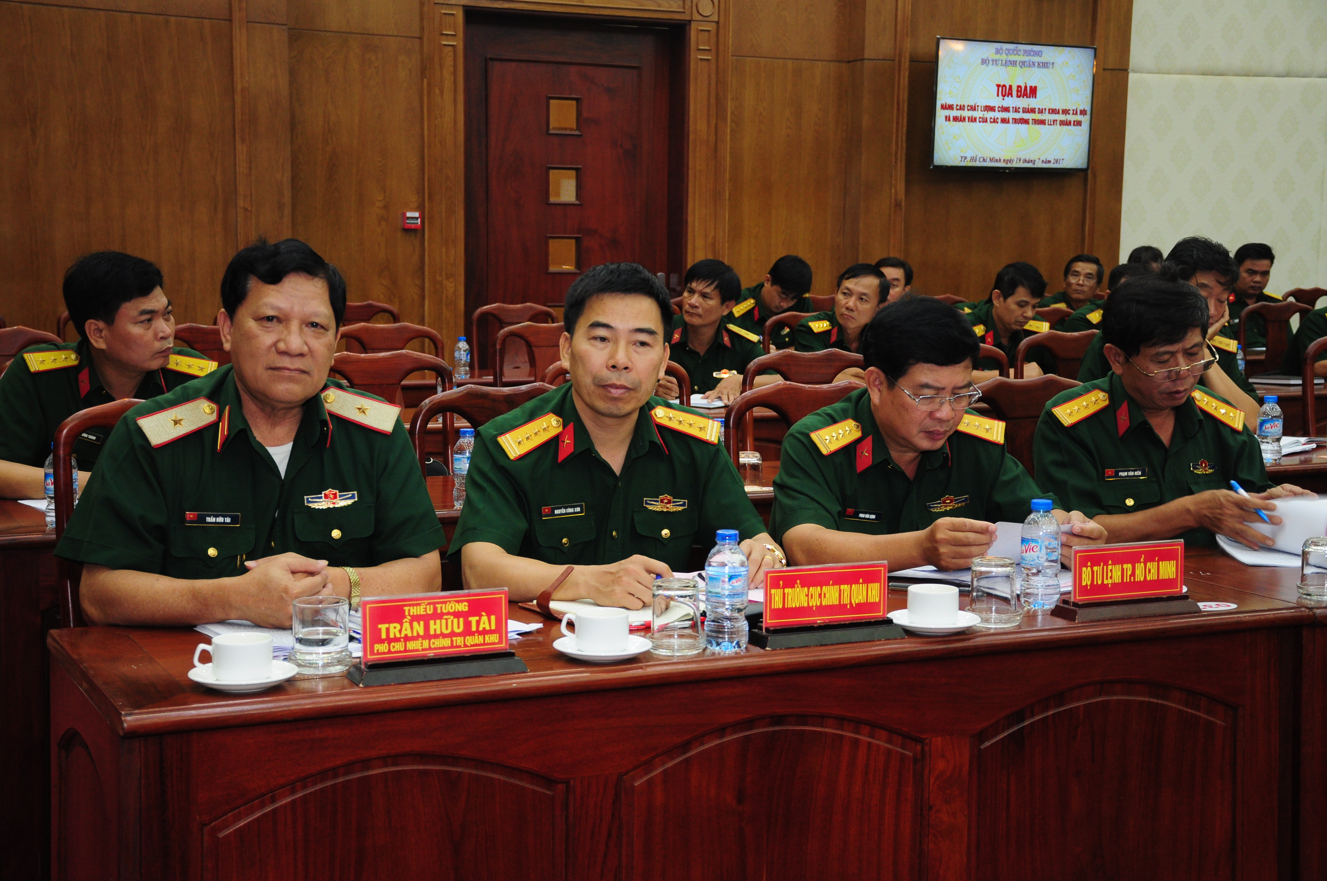 Đối với nhiệm vụ nâng cao chất lượng đội ngũ cán bộ, giáo viên giảng dạy khoa học xã hội và nhân văn, Đại tá Phan Văn Xựng, Phó Chính ủy Bộ Tư lệnh Thành phố Hồ Chí Minh cho rằng: Coi trọng chuẩn hóa đội ngũ cán bộ quản lý và giáo viên nói chung, giáo viên khoa học xã hội và nhân văn nói riêng là nhiêm vụ thường xuyên và liên tục. Trong thời gian qua, Bộ Tư lệnh Thành phố Hồ Chí Minh đã chủ động đưa cán bộ, giáo viên đi thực tế ở các địa phương; cử cán bộ quản lý, giáo viên tham gia các lớp tập huấn, bồi dưỡng ở các cấp nhằm nâng cao nhận thức, năng lực sư phạm cho đội ngũ cán bộ, giáo viên, đến nay 100% giáo viên có trình độ đại học và trên đại học.