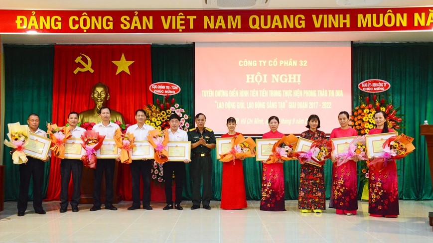 (QK7 Online) - Ngày 17-9, tại TP Hồ Chí Minh, Công ty Cổ phần 32, Tổng cục Hậu cần tuyên dương điển hình lao động tiên tiến trong thực hiện Phong trào thi đua “Lao động giỏi, lao động sáng tạo” giai đoạn 2017-2022.